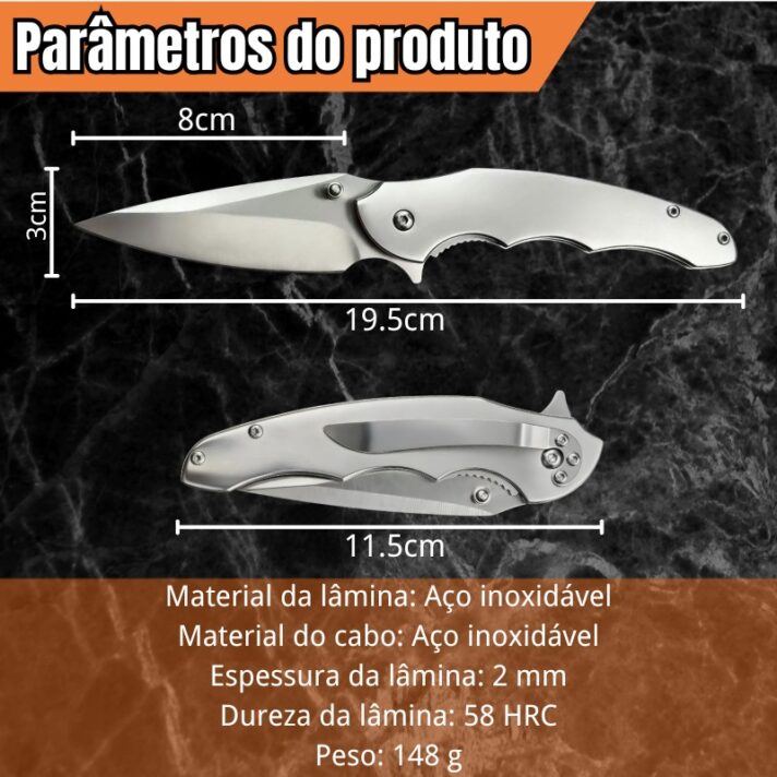 Canivete de Bolso 19,5cm Feito em Aço Inox com Clip e Cabo Anatômico 888N