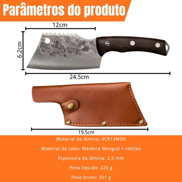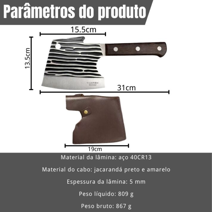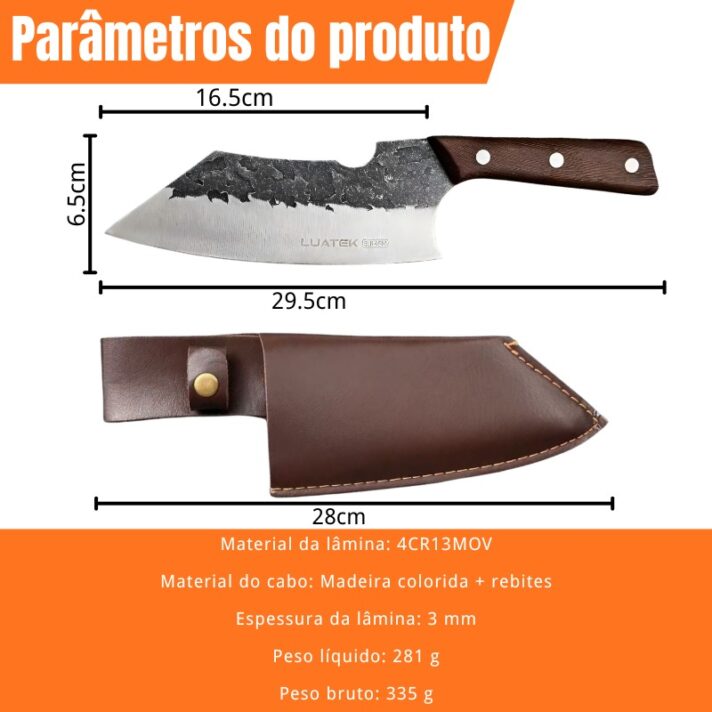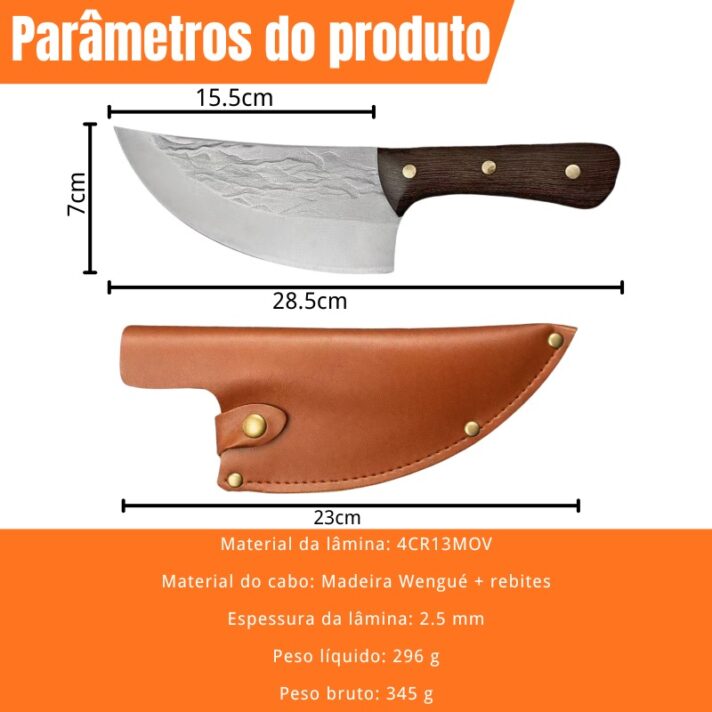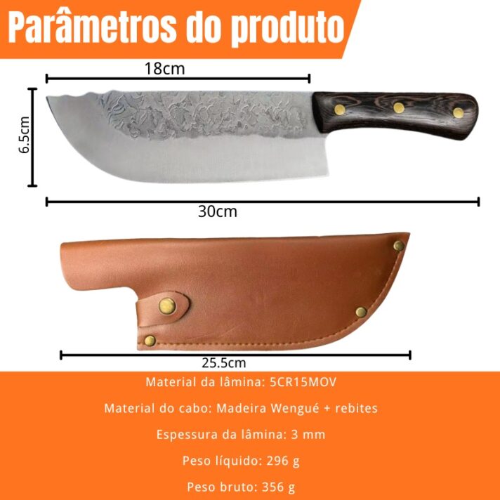 Faca Cutelo Fulltang Aço Manganês,Chef 31cm+ Bainha Couro DJ424