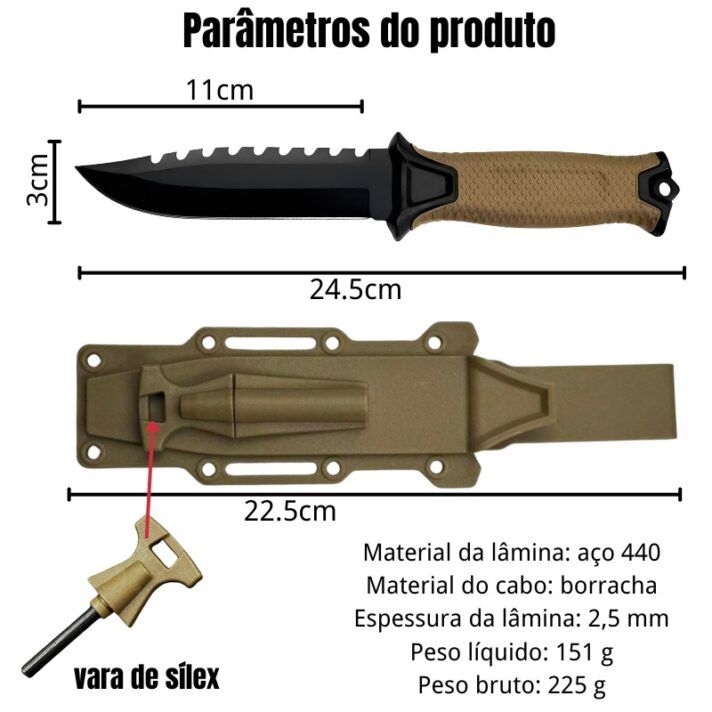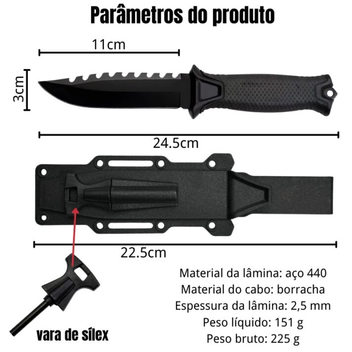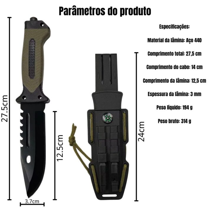 Faca Tática de Sobrevivência 27,5cm Aço Inox e Cabo em Polímero ABS – SA31