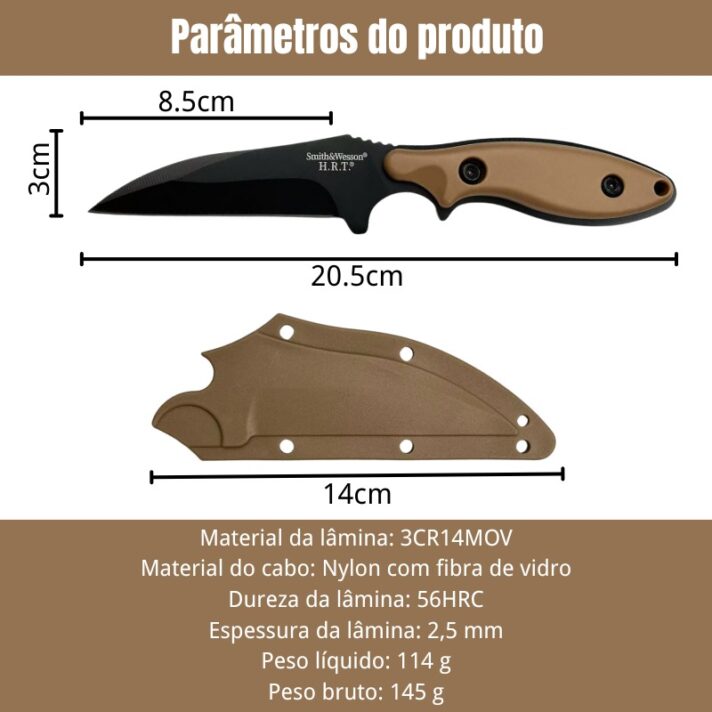 Faca Multiuso Acampamento 20,5cm Aço 3CR14MOV e Cabo Nylon c/ Fibra de Vidro Design Smith & Wesson + Bainha SK8-M