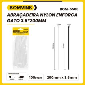 Abraçadeira Nylon Enforca Gato com 100 Peças 3.6 x 200mm. BOM-5506 quantidade