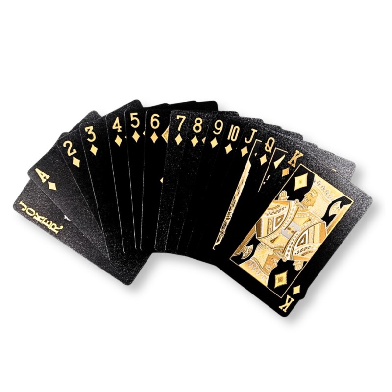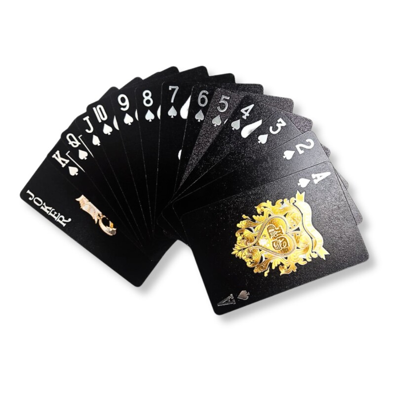 O baralho YWJS-9 é ideal para quem busca estilo e durabilidade. Produzido em plástico premium à prova d’água, ele combina resistência e sofisticação com um visual marcante nas cores preto e dourado, estampado com detalhes de caveira que remetem a um design moderno e ousado.