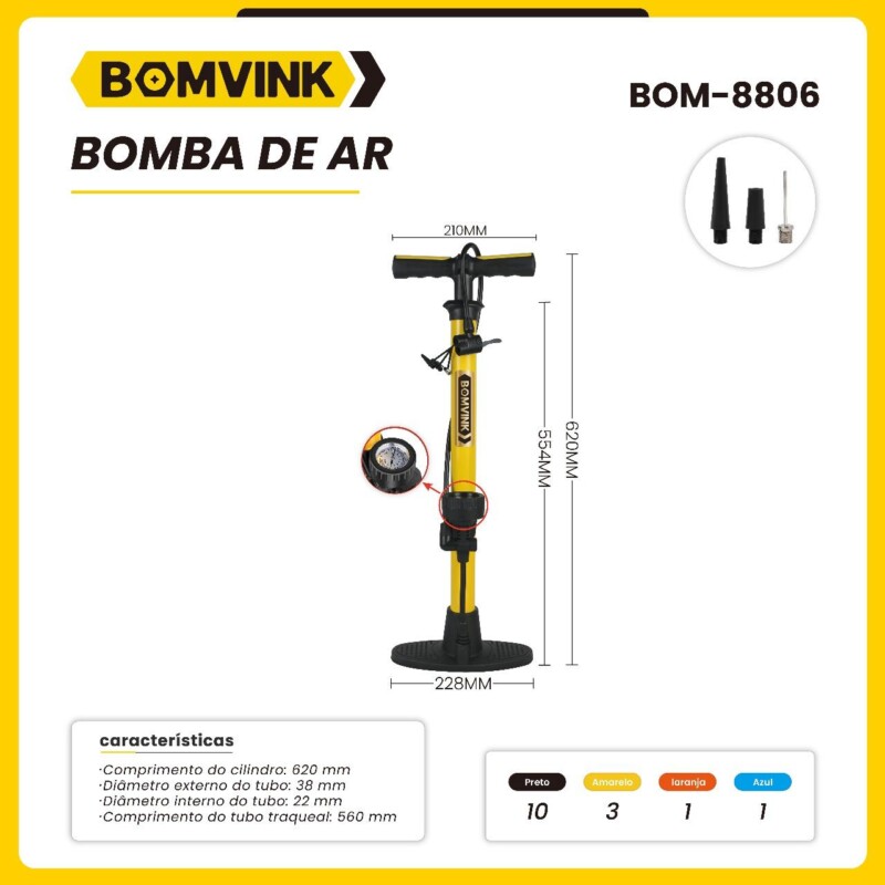 Bomba de Ar com Cilindro e 3 Bicos. BOM-8806 quantidade