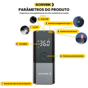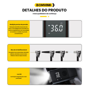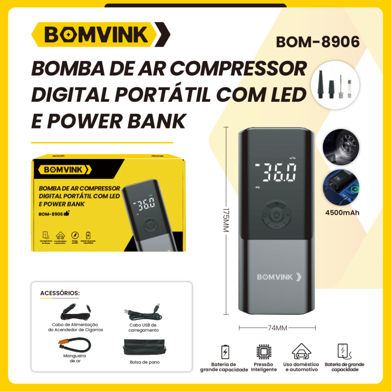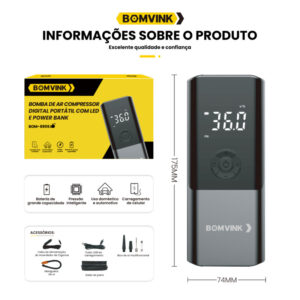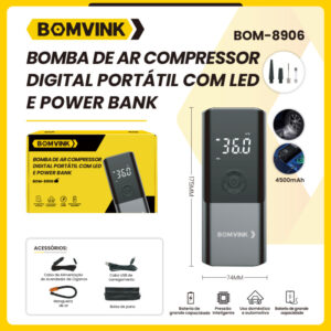Bomba de Ar Inteligente Calibrador Pneu Portátil Digital BOMVINK BOM-8906
