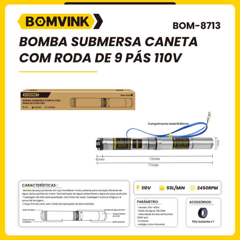 BOMBA SUBMERSA CANETA COM 9 PÁS 110V BOMVINK BOM-8713 quantidade