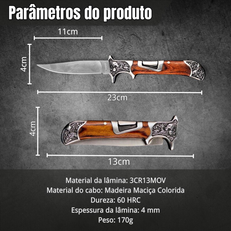 Canivete 23cm Aço 3Cr13MoV com Guarda e Pomo em Metal e Cabo de Madeira A3207/1851-VM quantidade