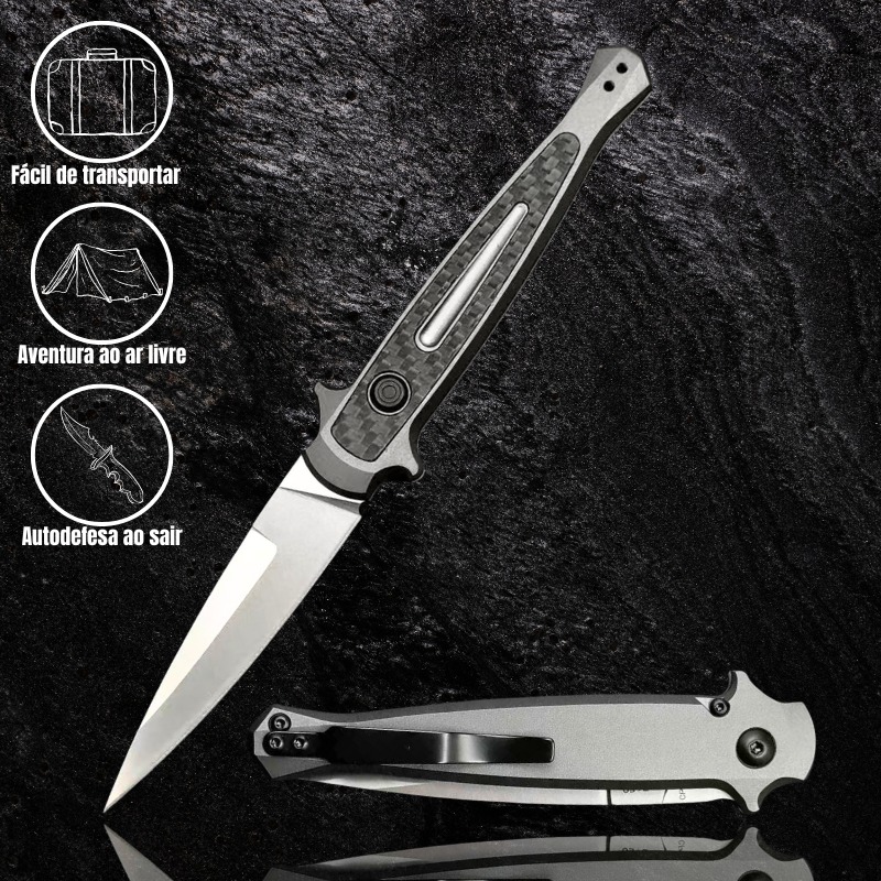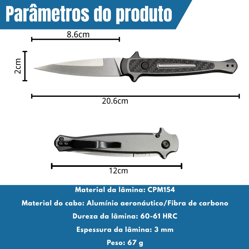 Canivete Aço Especial CPM-154 e Cabo em Alumínio Aeronaútico e Fibra de Carbono com Clip de Bolso KER-7150 quantidade