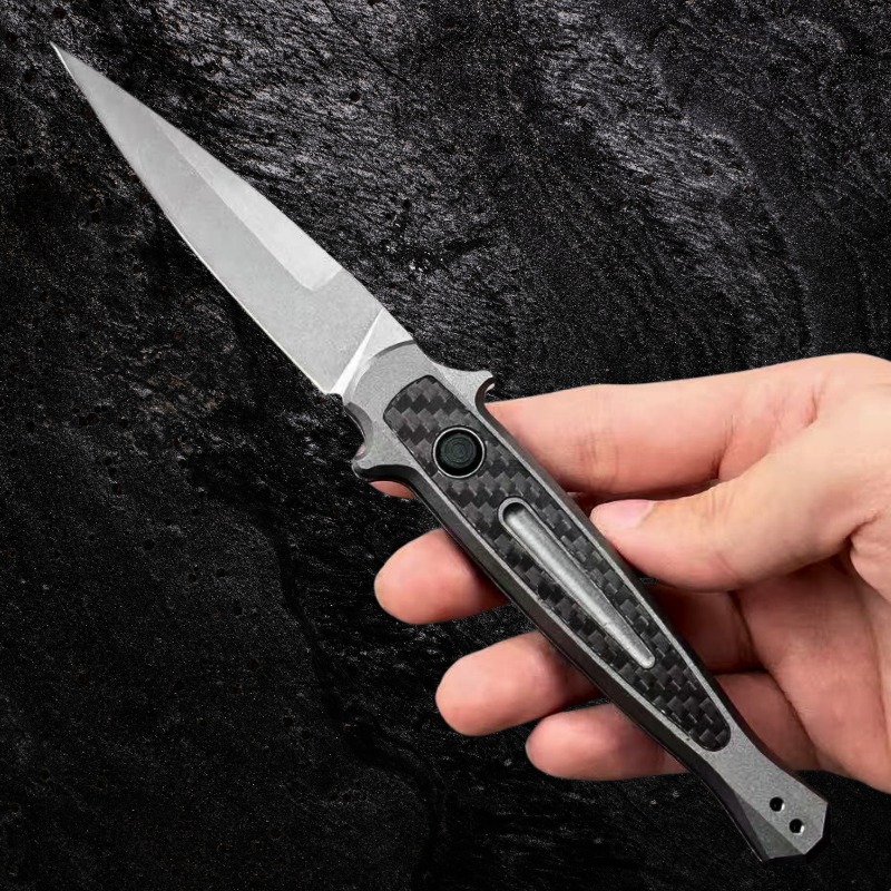 Canivete Aço Especial CPM-154 e Cabo em Alumínio Aeronaútico e Fibra de Carbono com Clip de Bolso KER-7150