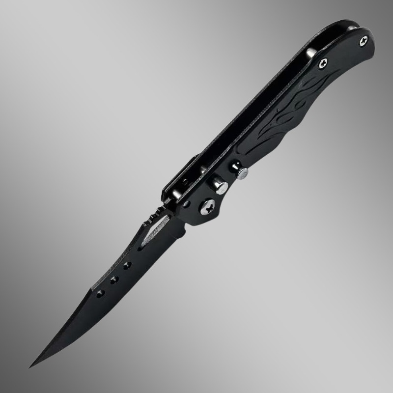 Canivete Automático de 16cm com Design de Aberturas na Lâmina + Clip de Bolso DJ195