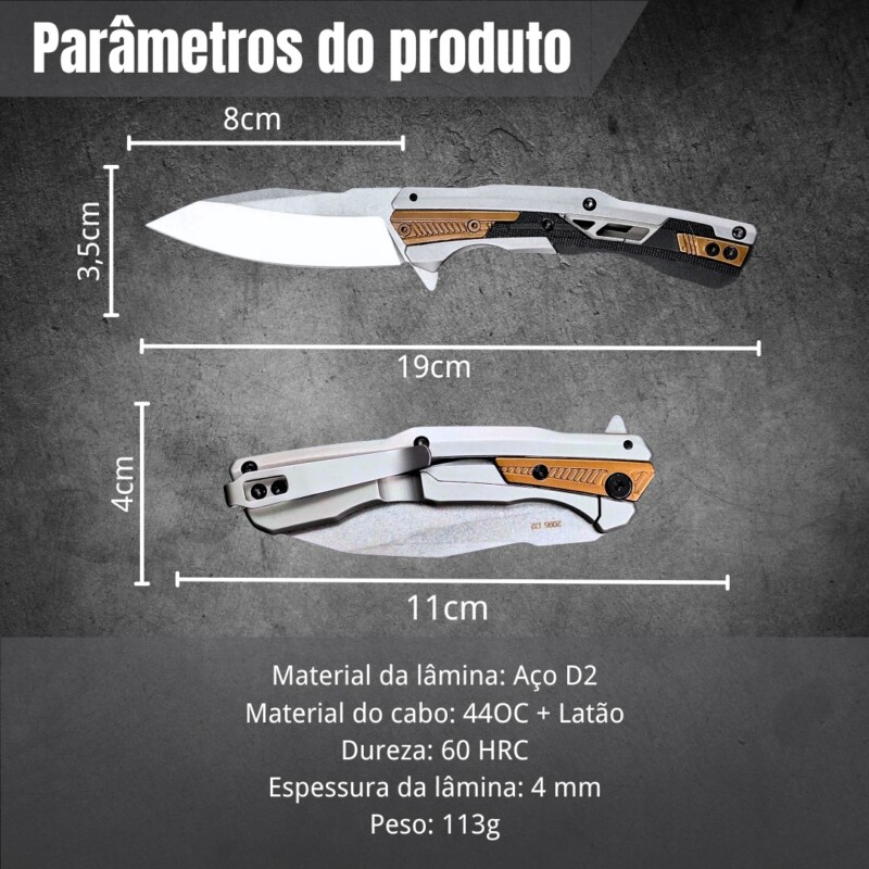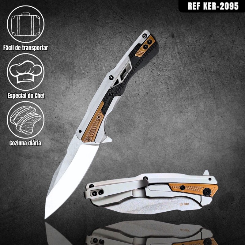 Canivete Semiautomático 19cm Aço Especial D2 e Cabo 440C + Latão c/ Clip e trava KER-2095 quantidade
