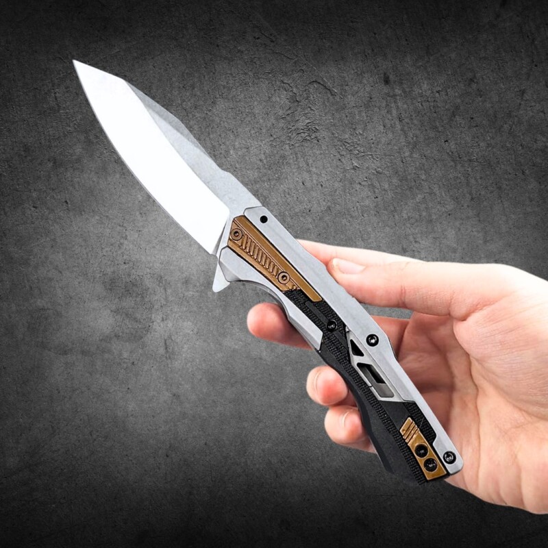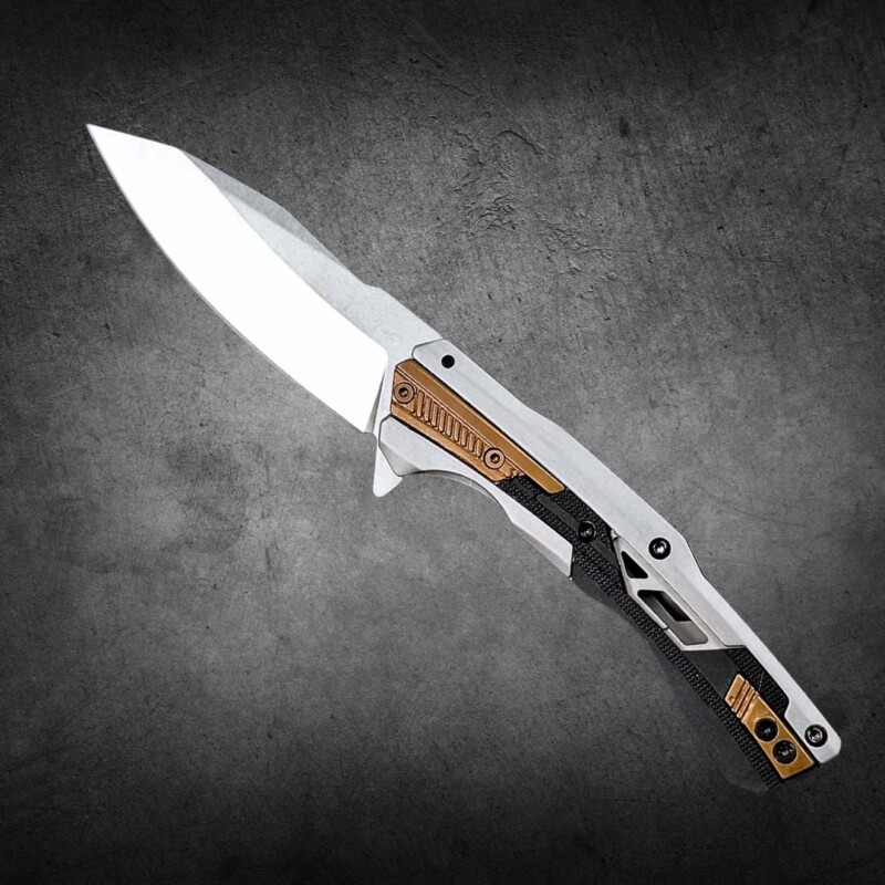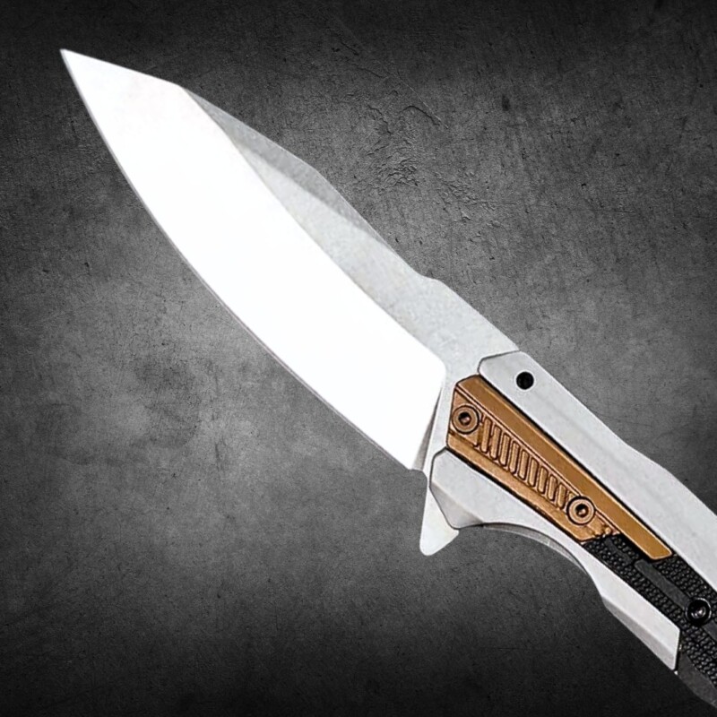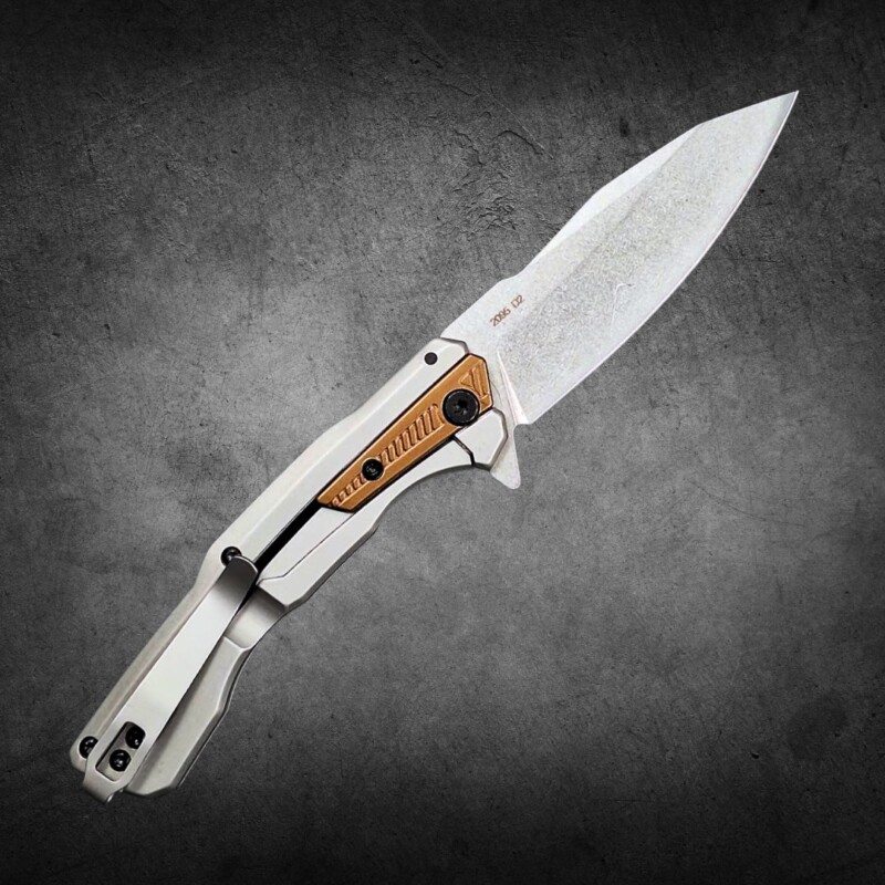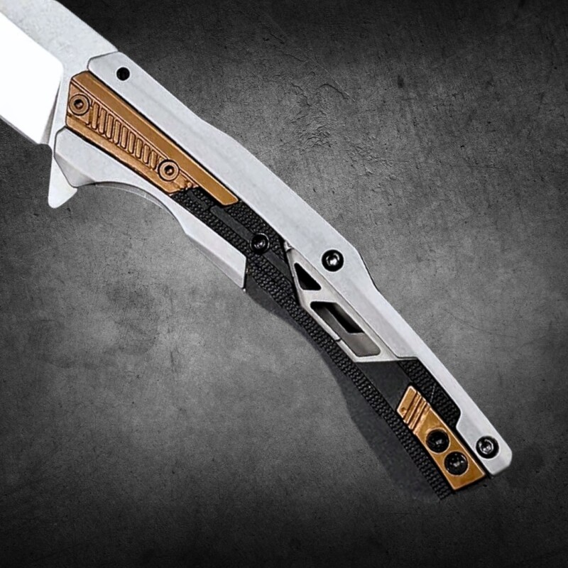 Canivete Semiautomático 19cm Aço Especial D2 e Cabo 440C + Latão c/ Clip e trava KER-2095
