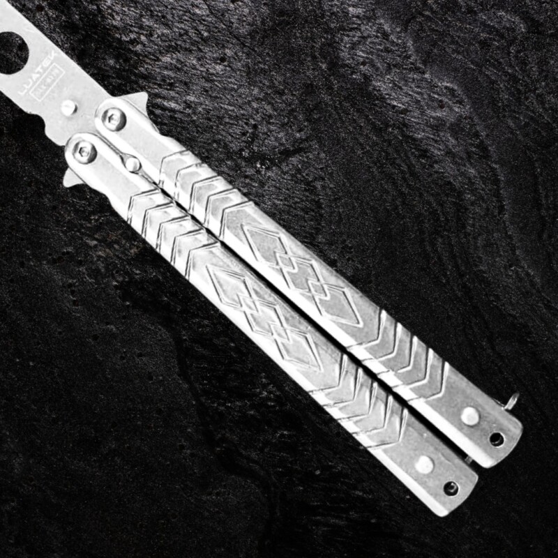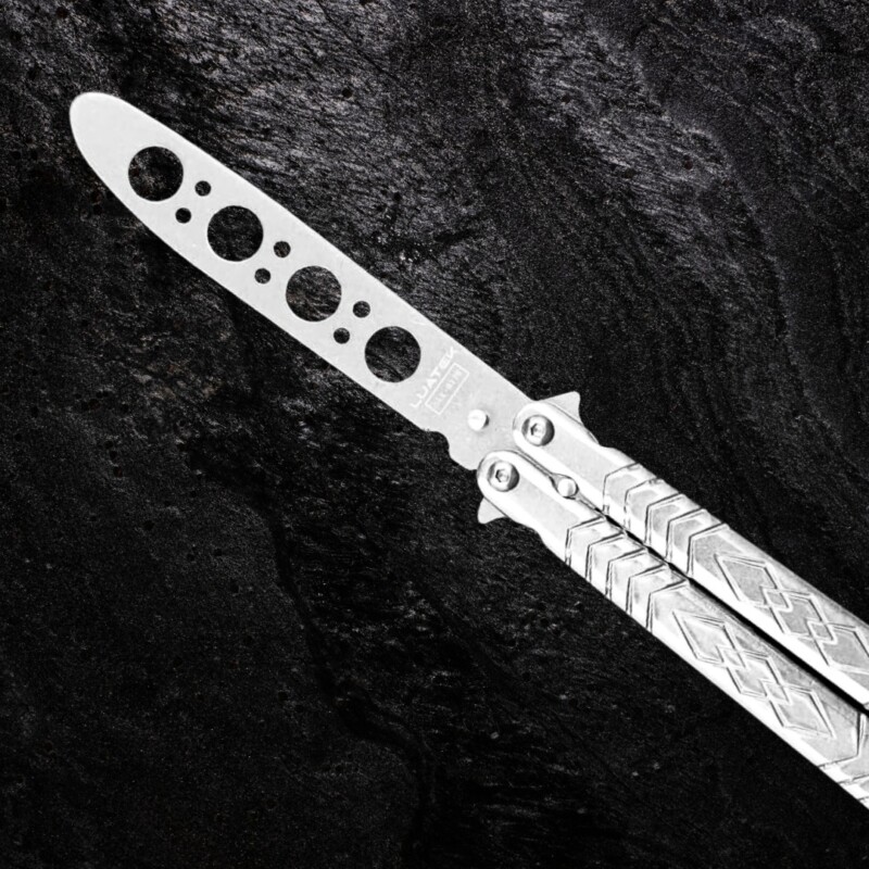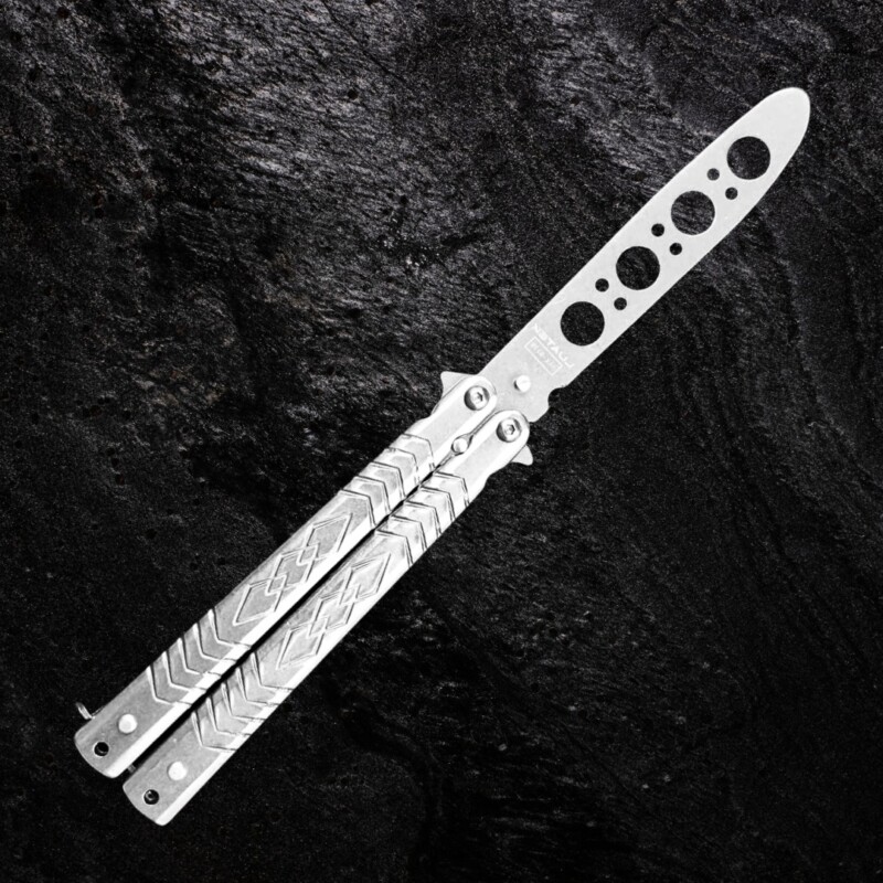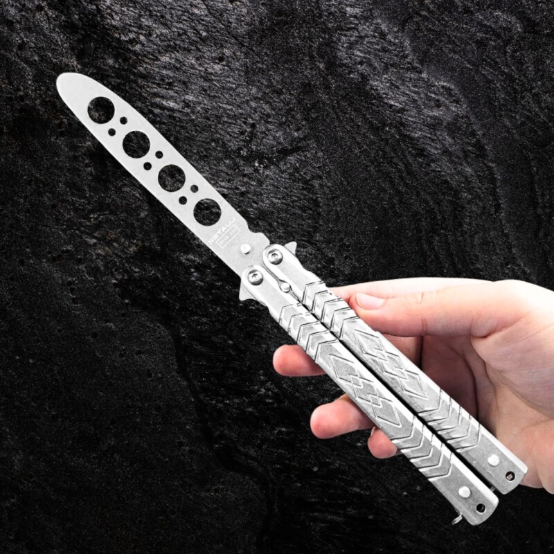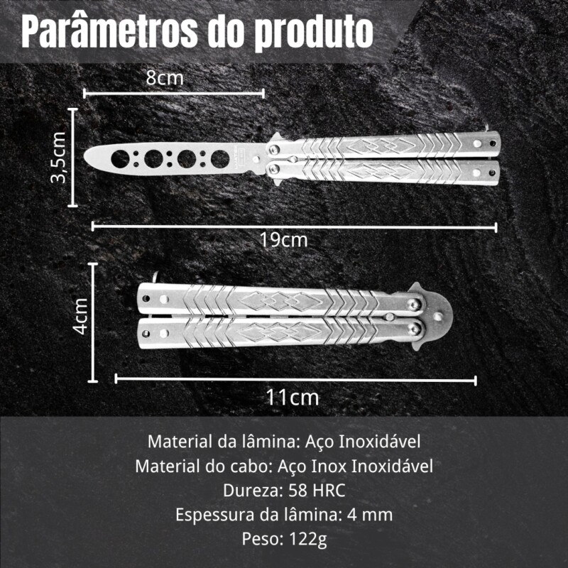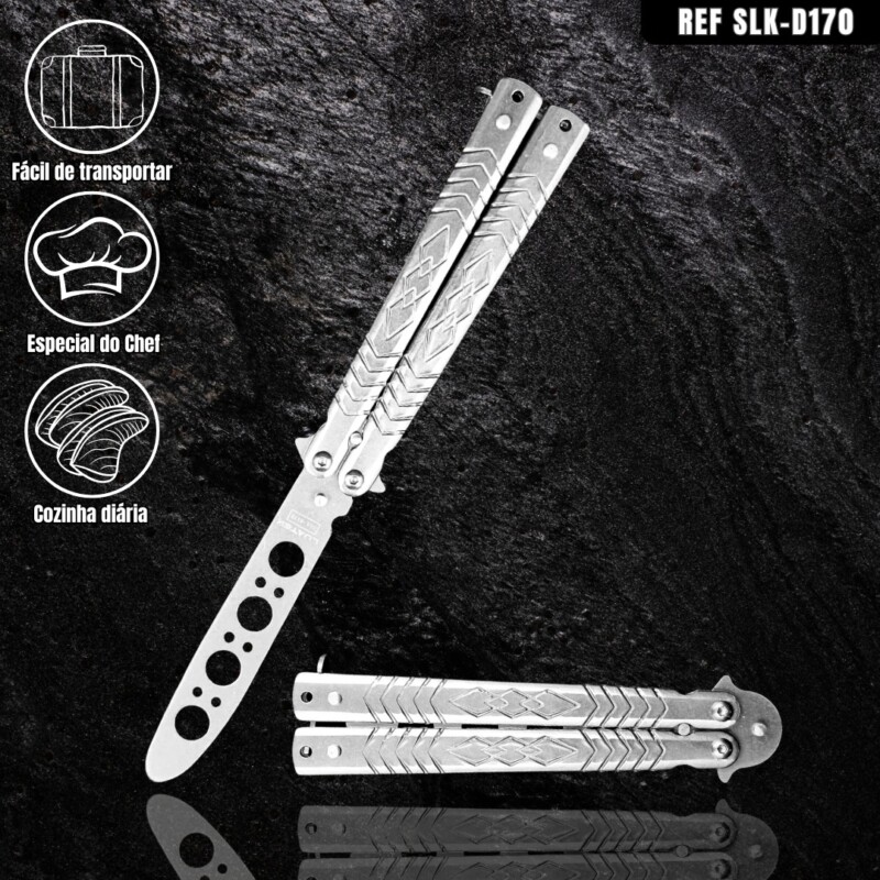 Canivete Tático De Treino Butterfly 22cm S/ Corte, em Aço Inox Personalizado Vazado Cor Prata. D170-PT3 quantidade