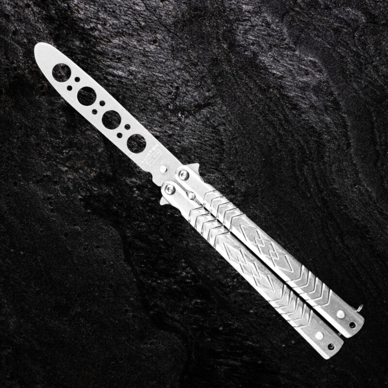 Canivete Tático De Treino Butterfly 22cm S/ Corte, em Aço Inox Personalizado Vazado Cor Prata. D170-PT3