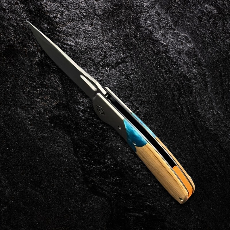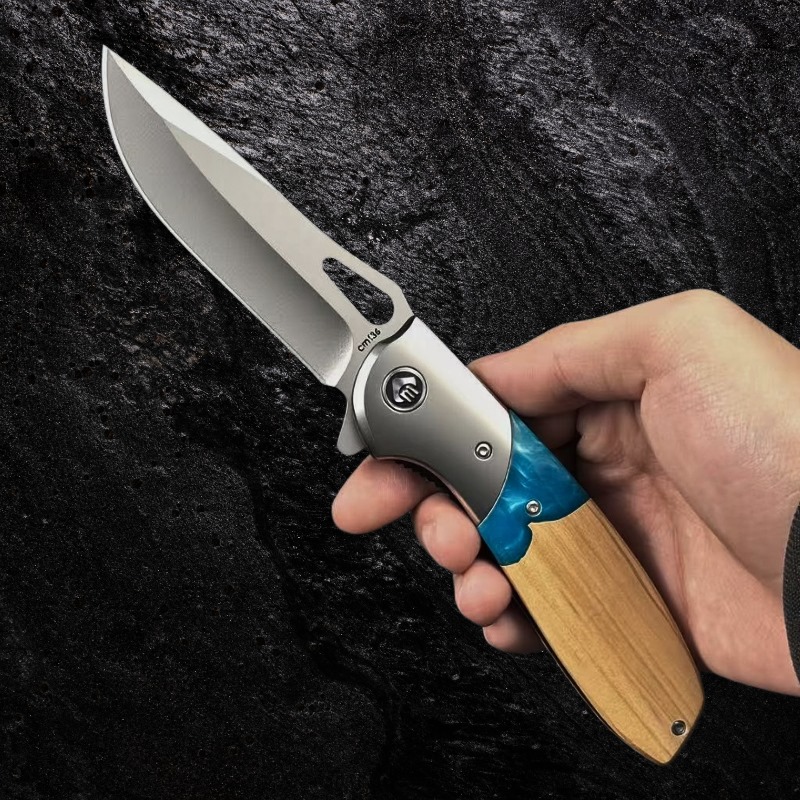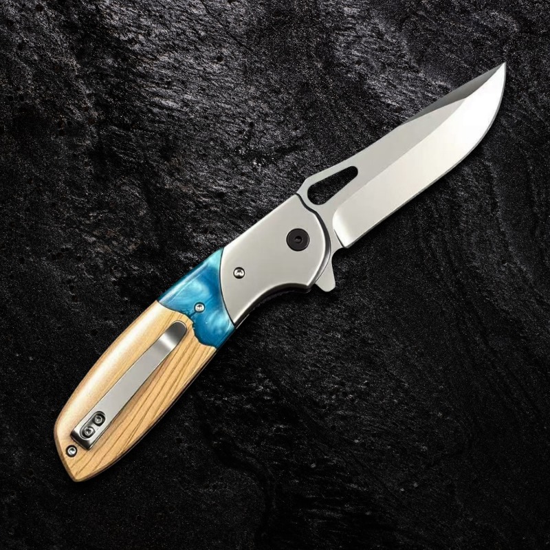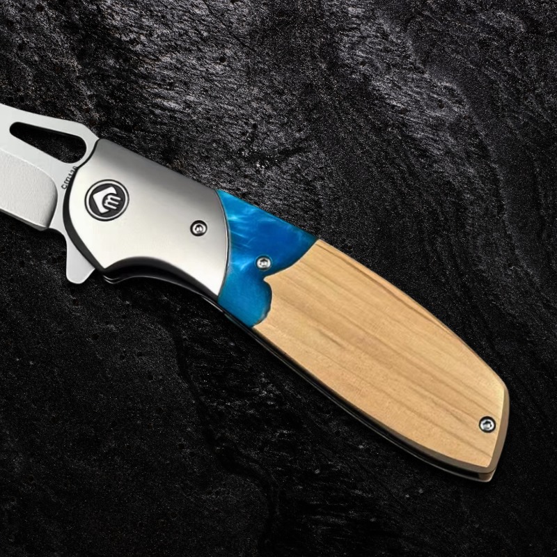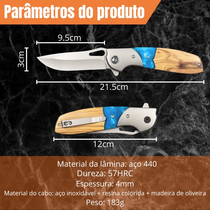 Canivete Tático Semi Automático Cabo Madeira com Resina CJ-98