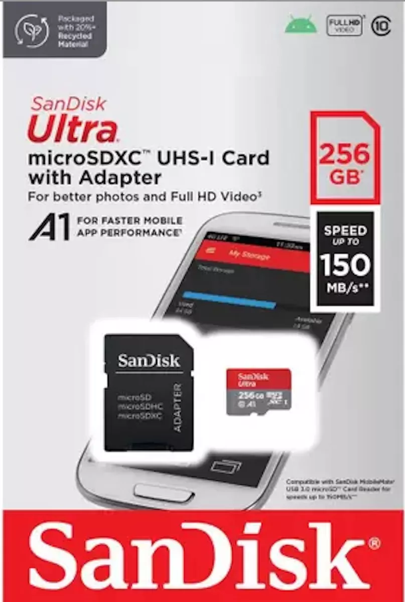 Cartão De Memória 256gb Micro Sd Ultra Classe 10 A1 Sandisk