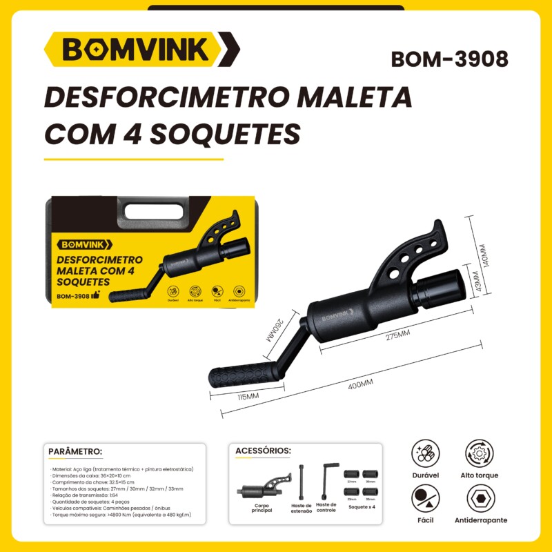 Desforcimetro Maleta com 4 Soquetes BOM-3908