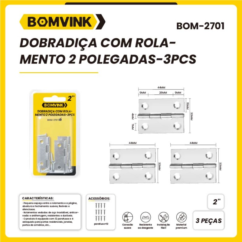 DOBRADIÇA C/ ROLAMENTO 2POL BOMVINK BOM-2701 quantidade