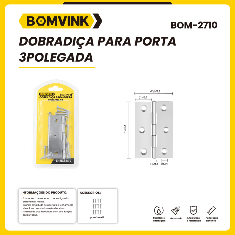 Dobradiça Para Porta 3 Polegadas BOMVINK BOM-2710