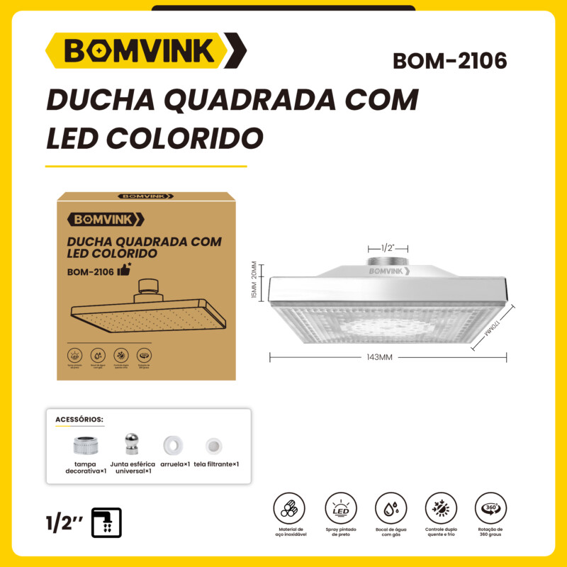 Ducha Quadrada Com Led Colorido BOMVINK BOM-2106 quantidade