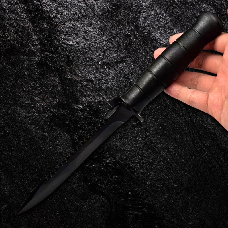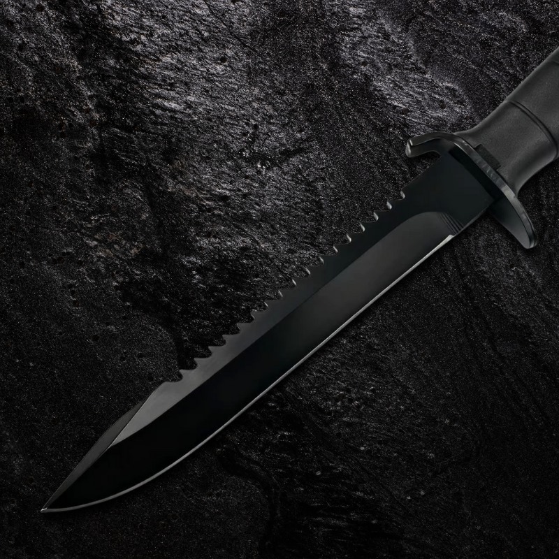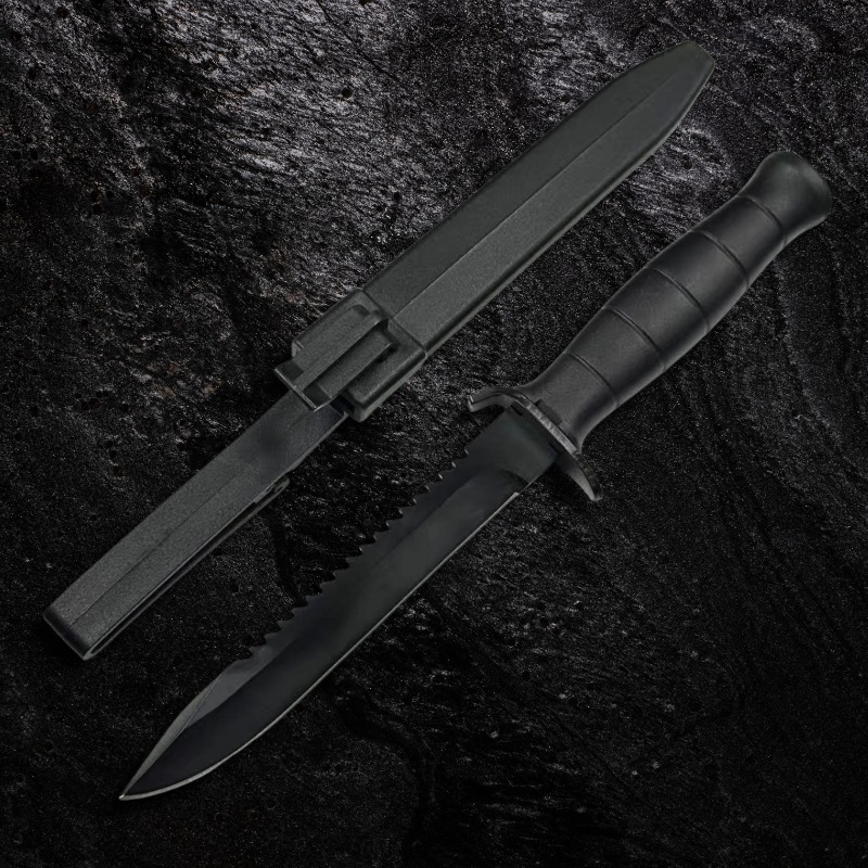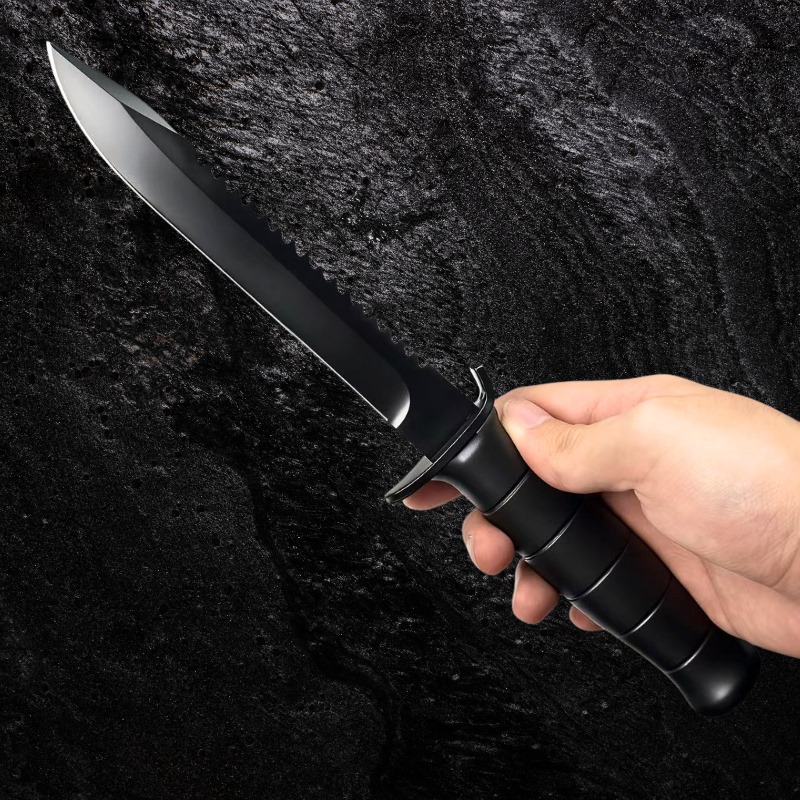 Faca Tática 28,5cm Lâmina Aço 8Cr13MoV c / Serrilhado em Dorso e Cabo de Polipropileno + Bainha GK03-B