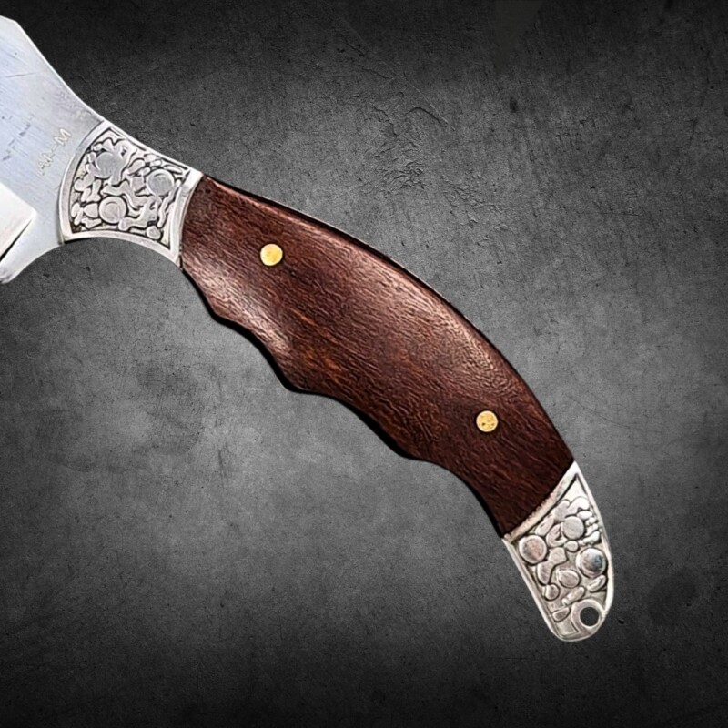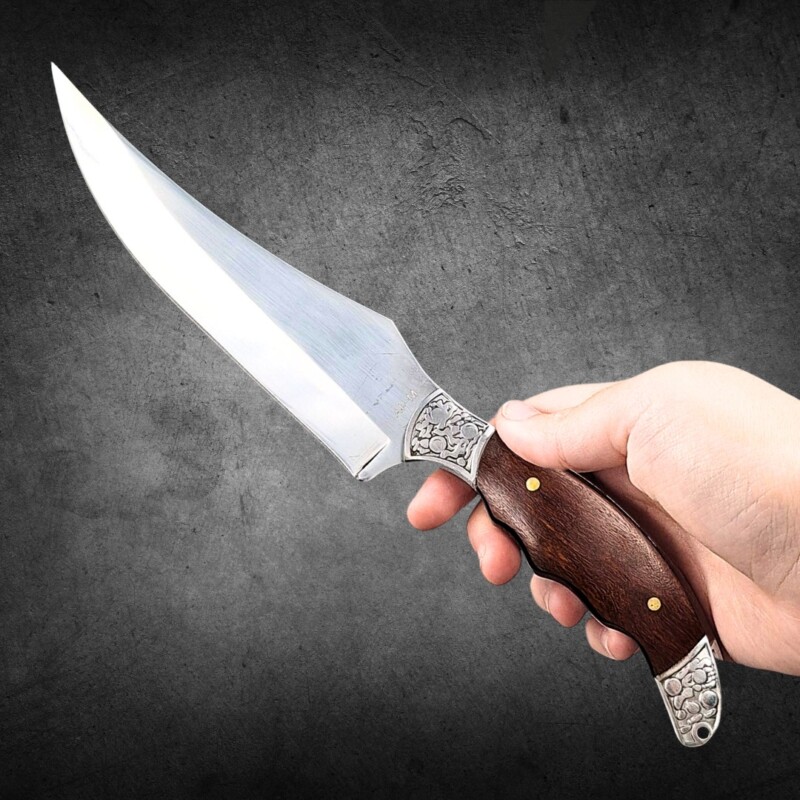 Faca Aço Inoxidável 26cm com Ponta Acentuada Guarda de metal e Cabo em Madeira + Bainha Couro M-D4A