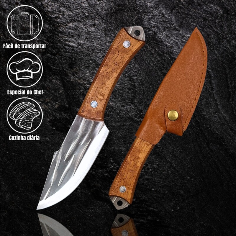 Faca Artesanal 21cm Churrasco Inox Com Bainha Couro DJ319 quantidade