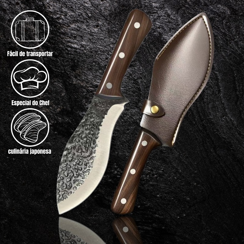 Faca Artesanal Curva, Chef 30,5 cm + Bainha Couro DJ426