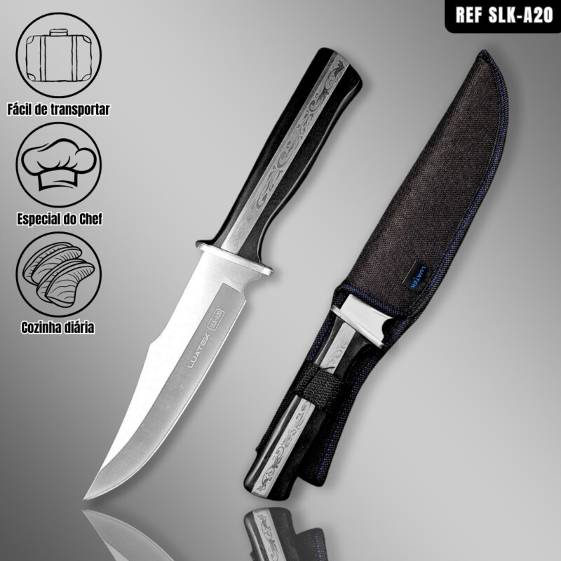 Faca Caça e Acampamento 30cm em Aço inoxidável e Cabo de Madeira + Bainha de Nylon Resistênte SLK-A20 quantidade