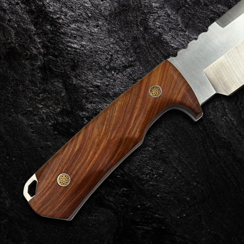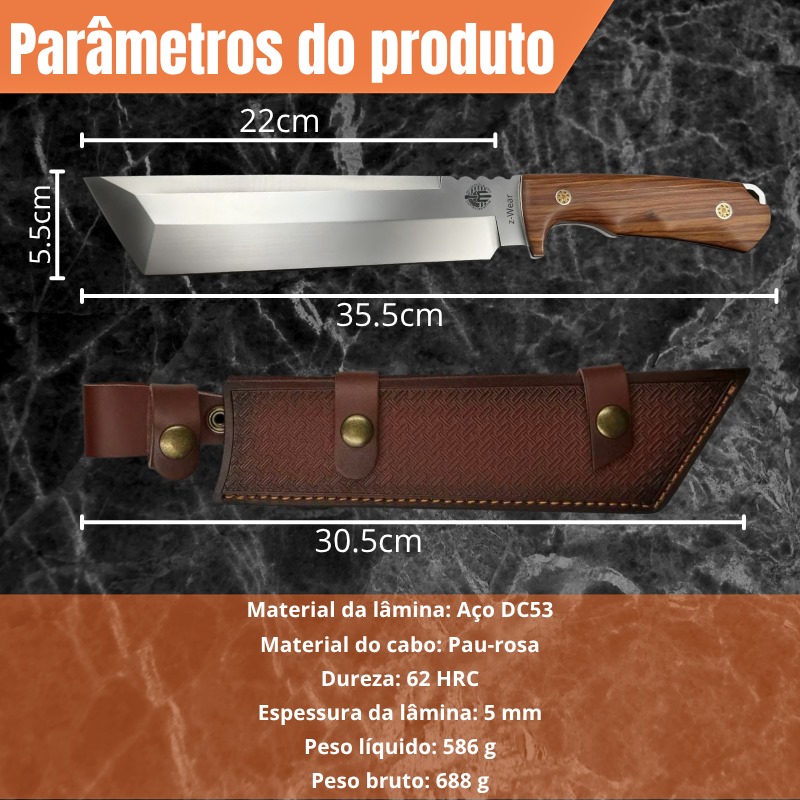 Faca Caça e Acampamento 35,5cm Aço DC53 e Cabo feito de Pau Rosa + Bainha Couro Premium GD-A25