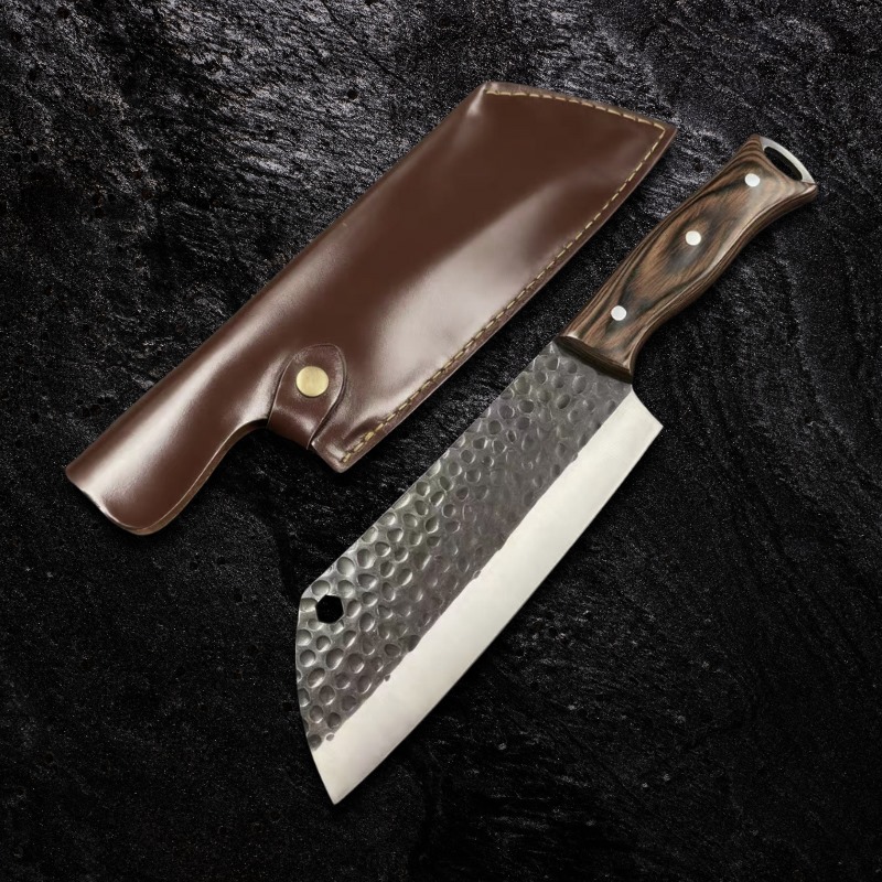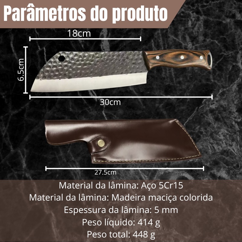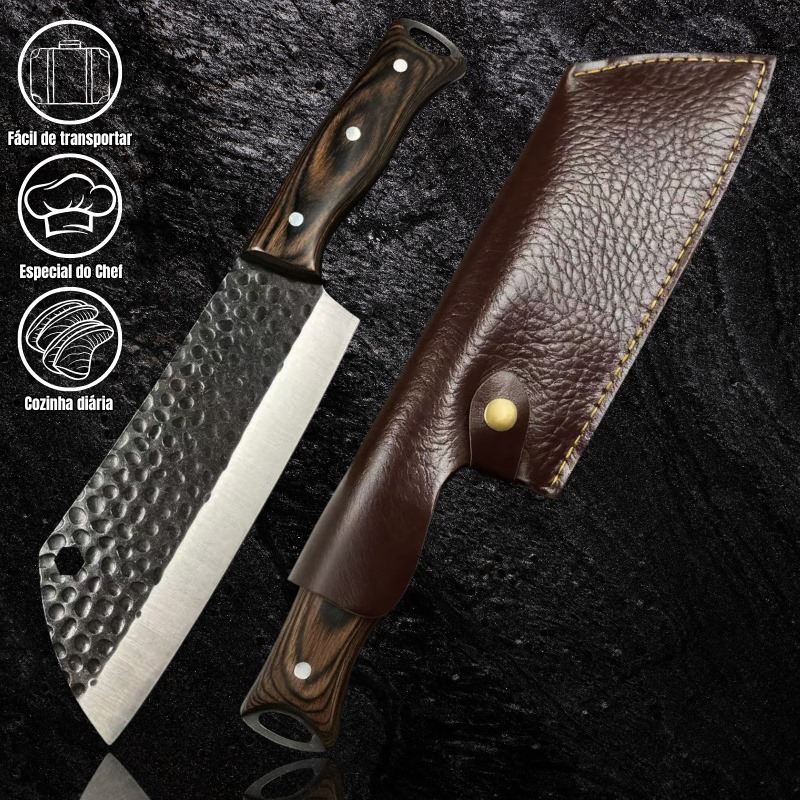 Faca Cutelo, Chef 30,5cm, Cabo em Madeira c/ Anel + Bainha Couro DJ420
