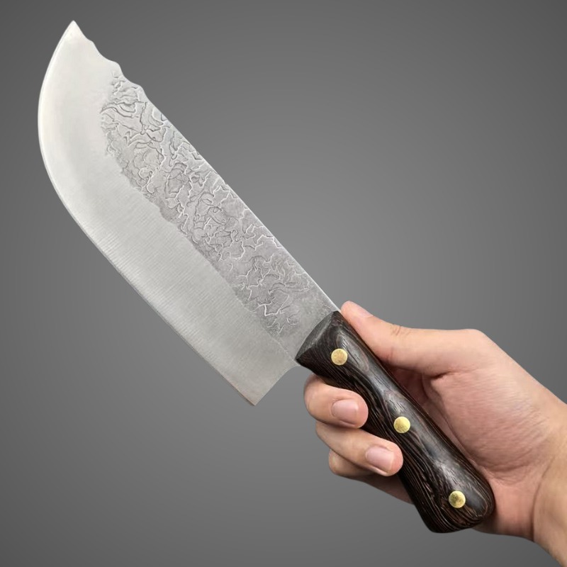 Faca Cutelo Forjado Artesanal Rustico Camping Chefe de Cozinha Com Bainha Couro DJ332
