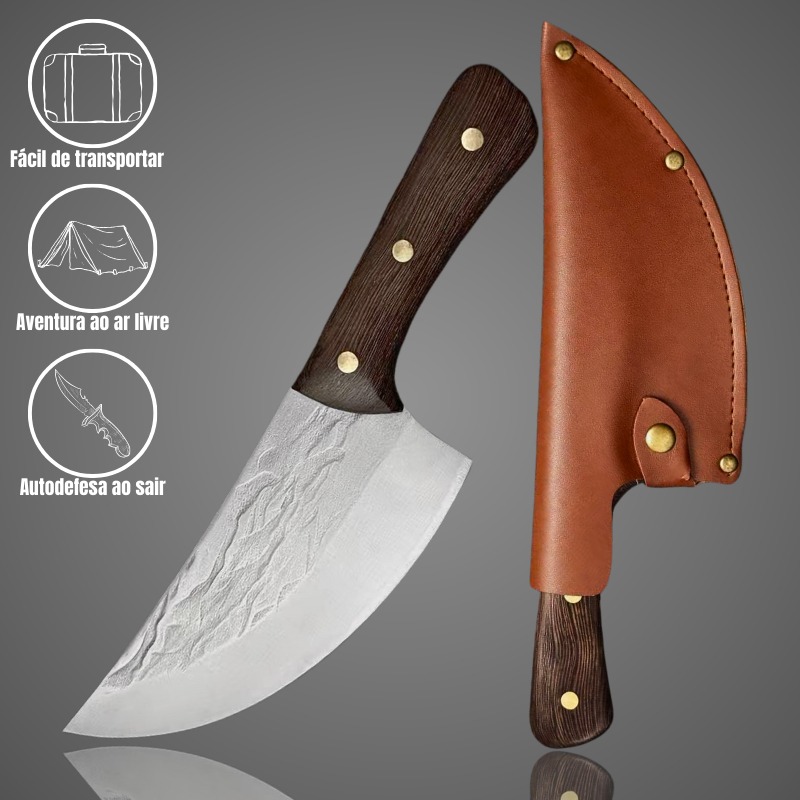 Faca Cutelo Forjado Artesanal Rustico Camping Chefe de Cozinha Com Bainha Couro DJ335 quantidade