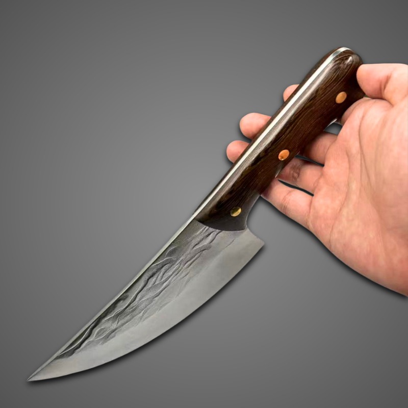 Faca Cutelo Forjado Artesanal Rustico Camping Chefe de Cozinha Com Bainha Couro DJ335