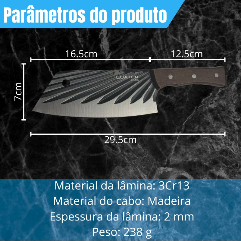 Faca Cutelo Fulltang, Chef 30cm, Cabo Tradicional Feito Madeira SLK-AF98