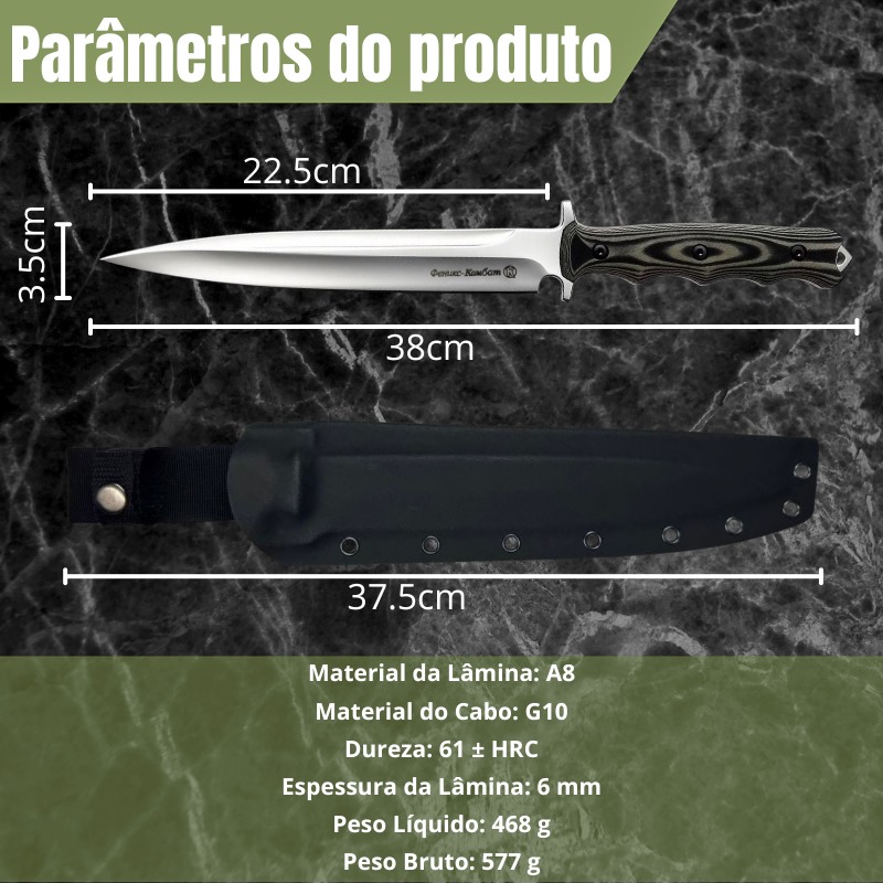 Faca de Caça Pesca 38cm Aço A8 e Cabo G10 + Bainha GD-A19 quantidade