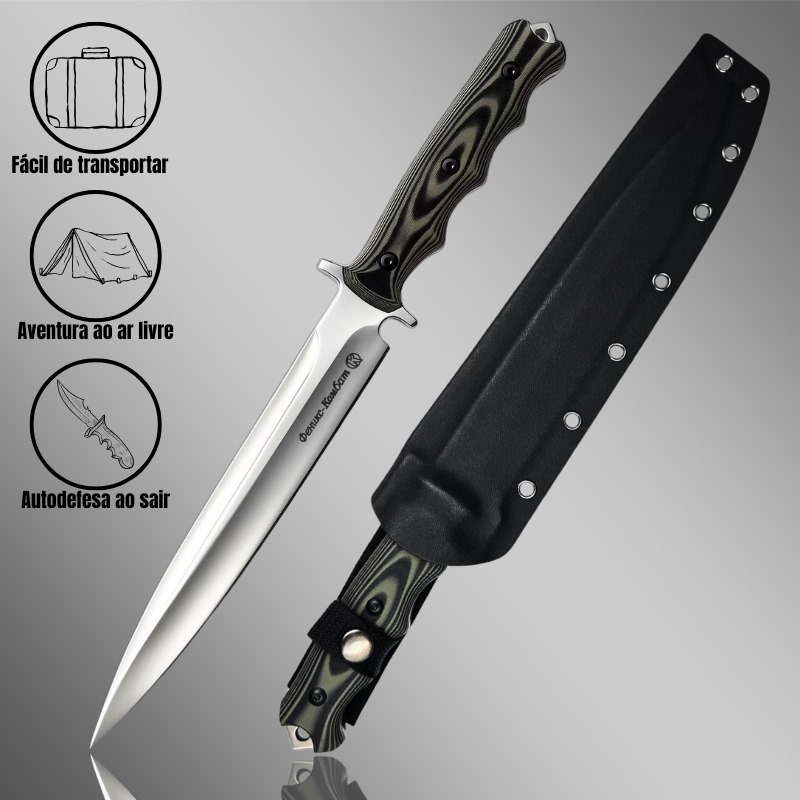 Faca de Caça Pesca 38cm Aço A8 e Cabo G10 + Bainha GD-A19