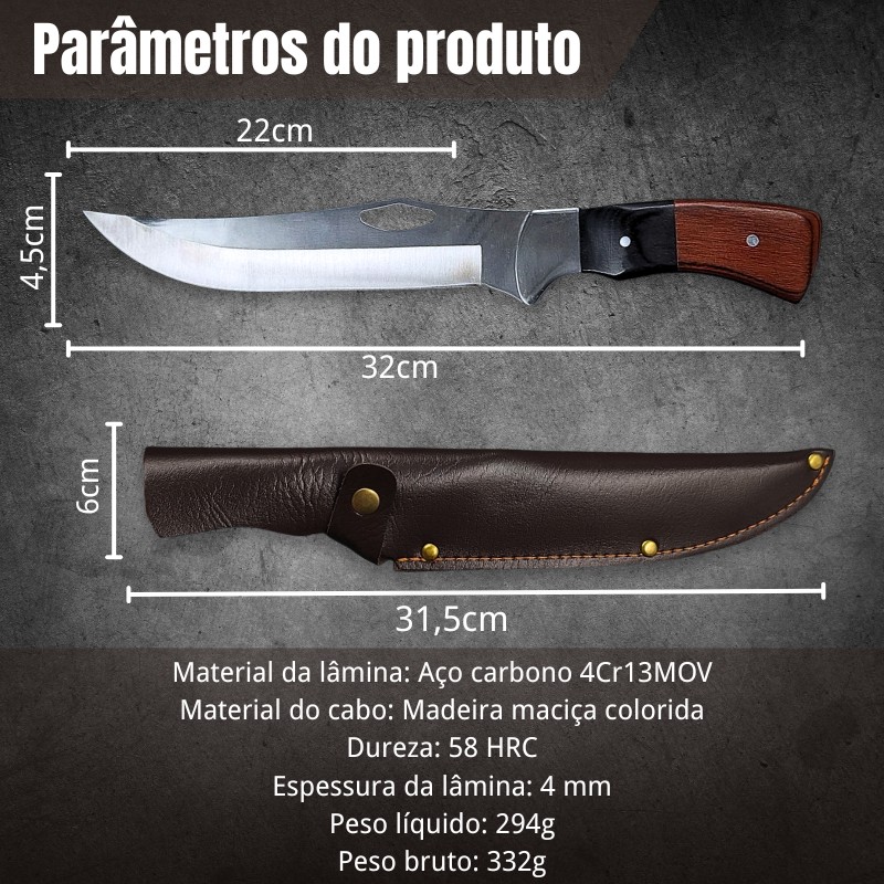 Faca Esportivo Mato Cabo Madeira Especial Fulltang 50cm HZ-0793