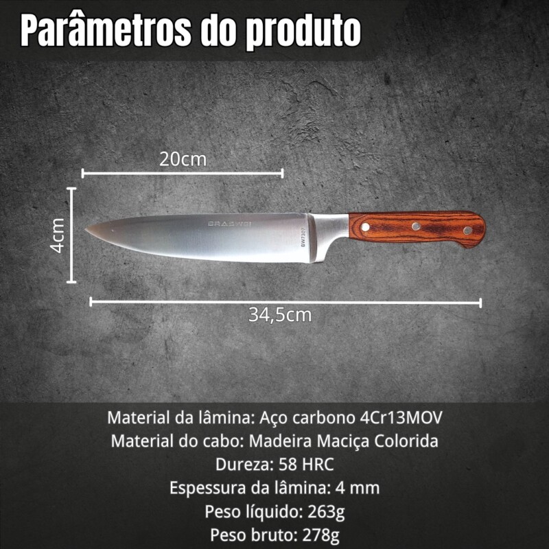 Faca do Chef 34,5cm Cabo em Madeira e Pinos Tradicional BW7307