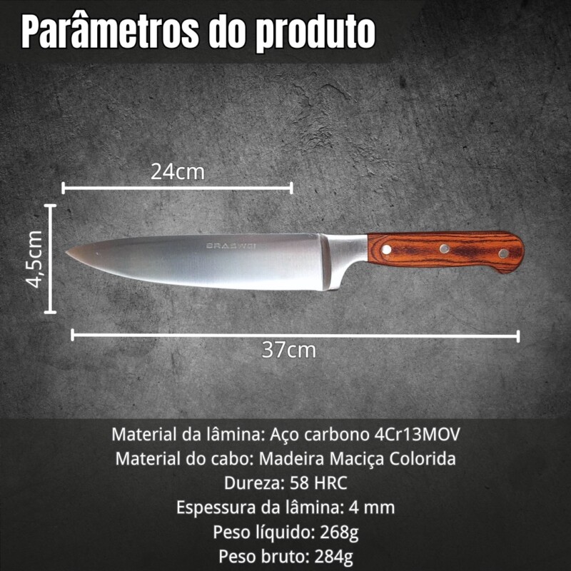 Faca do Chef 37cm Cabo em Madeira e Pinos Tradicional BW7308