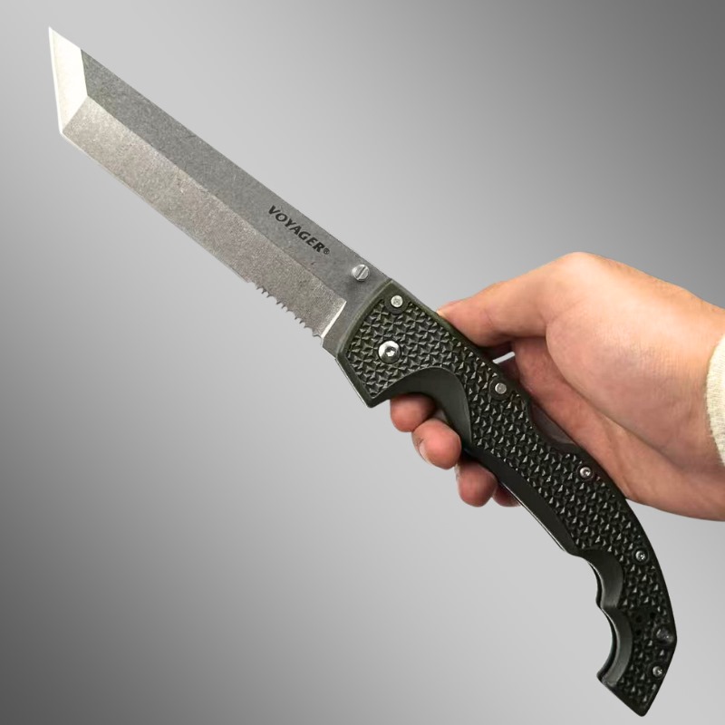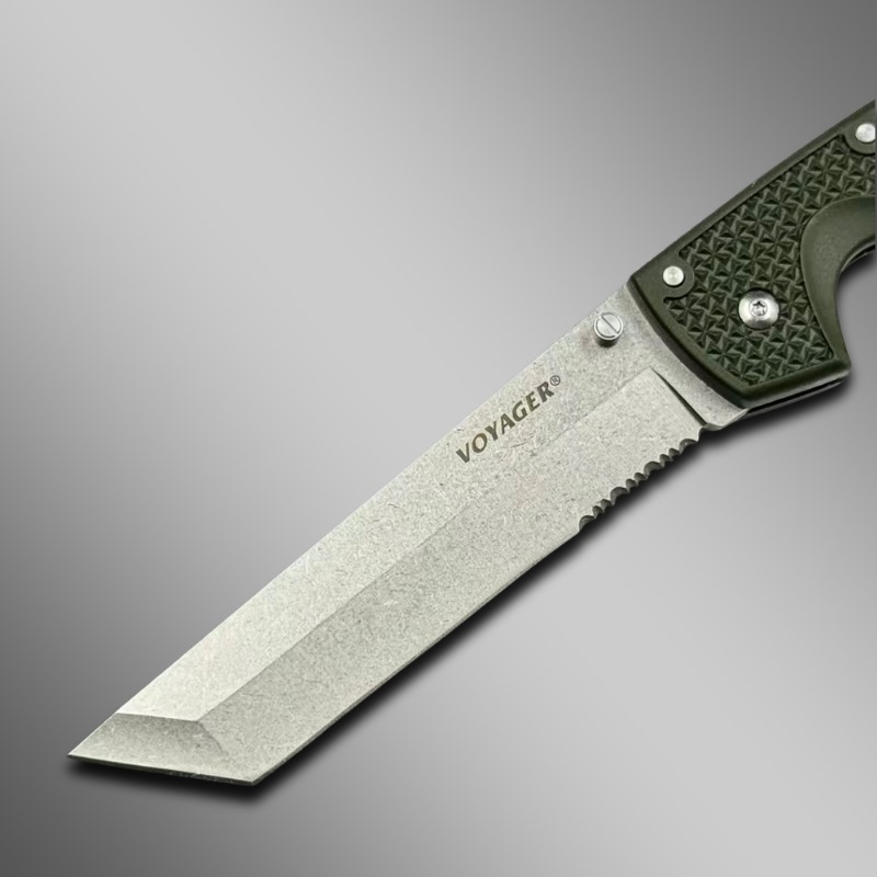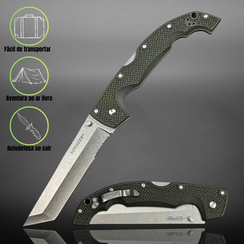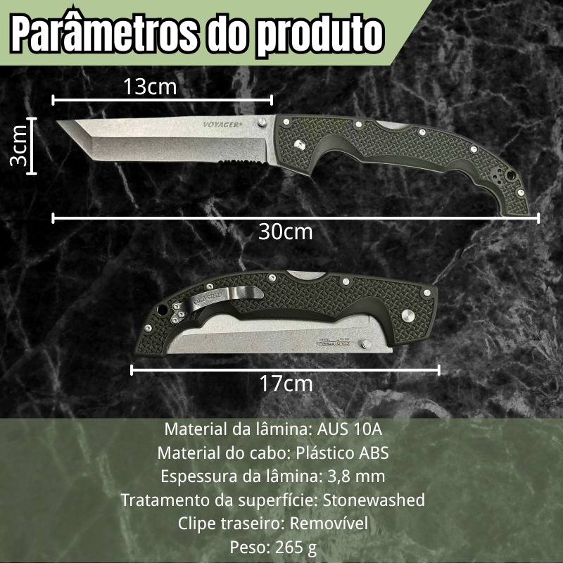 Faca Dobrável 30cm, Aço AUS 10A com Serrilhado e Cabo feito em Plástico ABS FP-07B