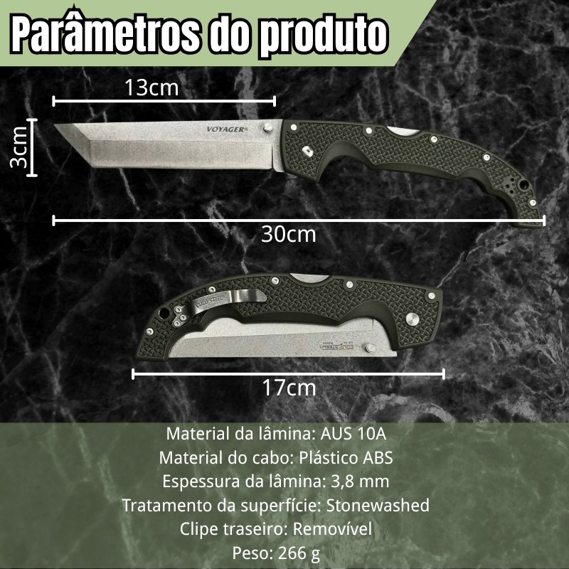 Faca Dobrável 30cm, Aço AUS 10A e Cabo feito em Plástico ABS FP-07A