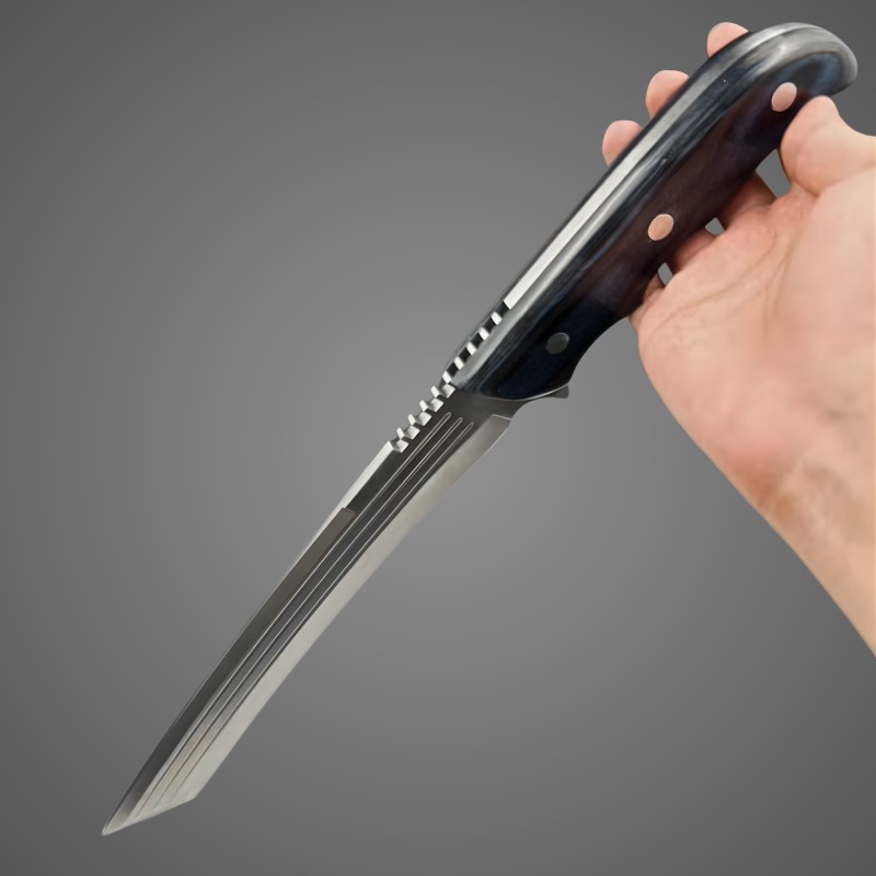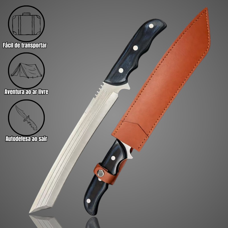 Faca Facão 44,5cm Aço 440C FullTang Cabo Madeira + Bainha Couro Premium YX-09