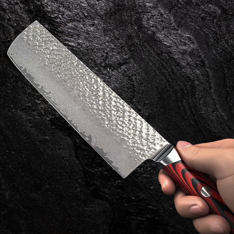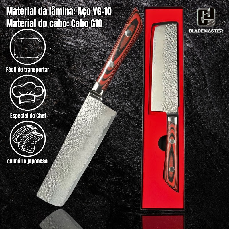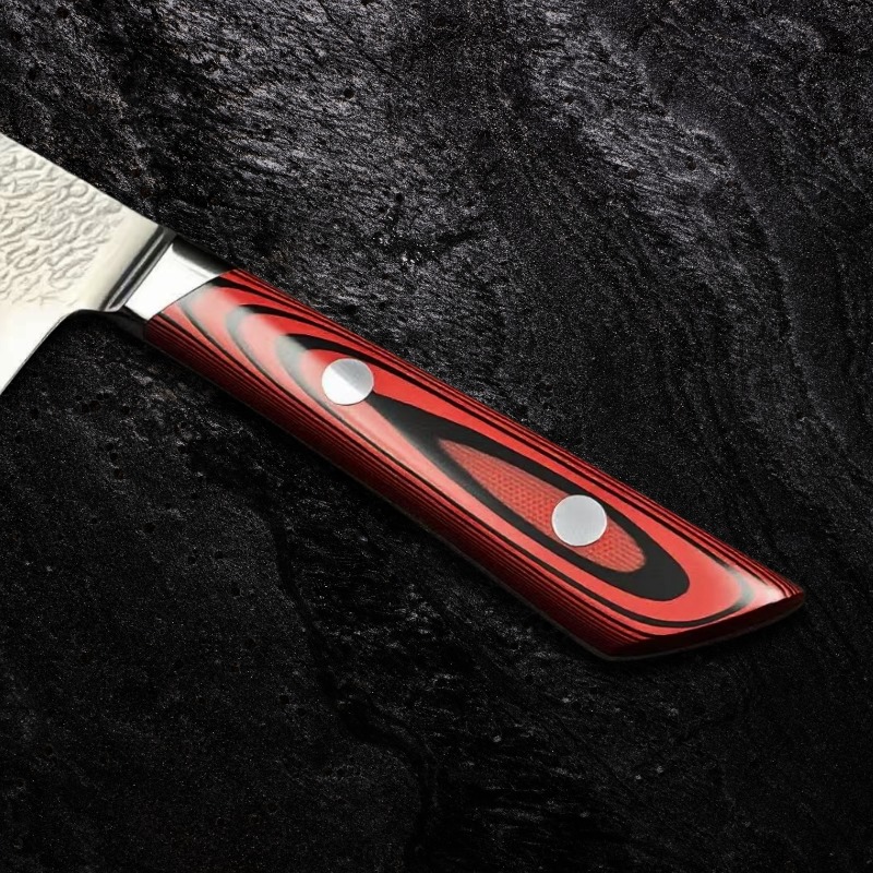 Faca Japonesa CJ-174 em Aço Damasco com Cabo G10 Vermelho e Preto