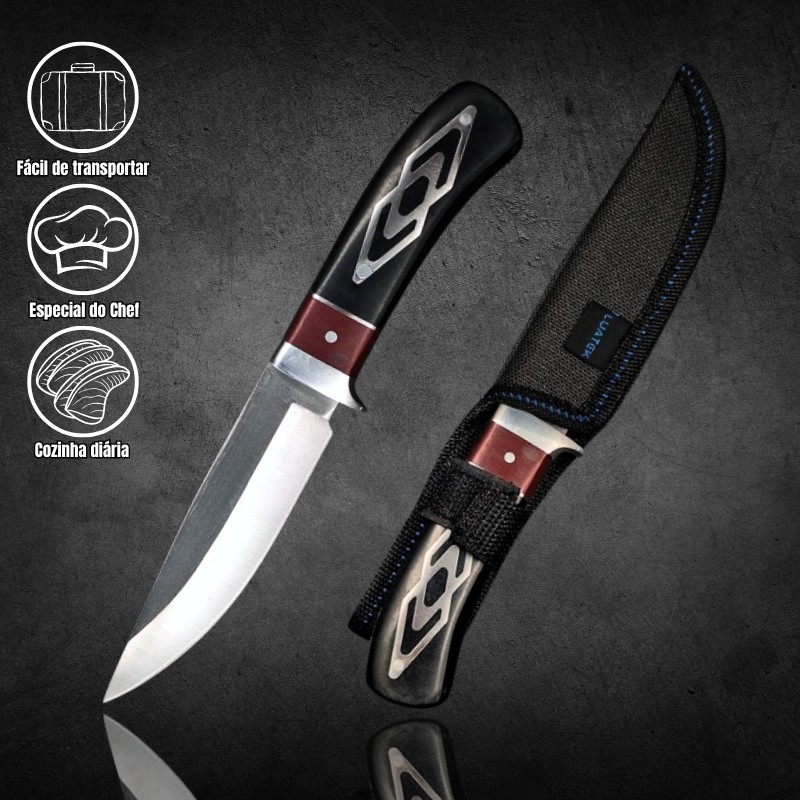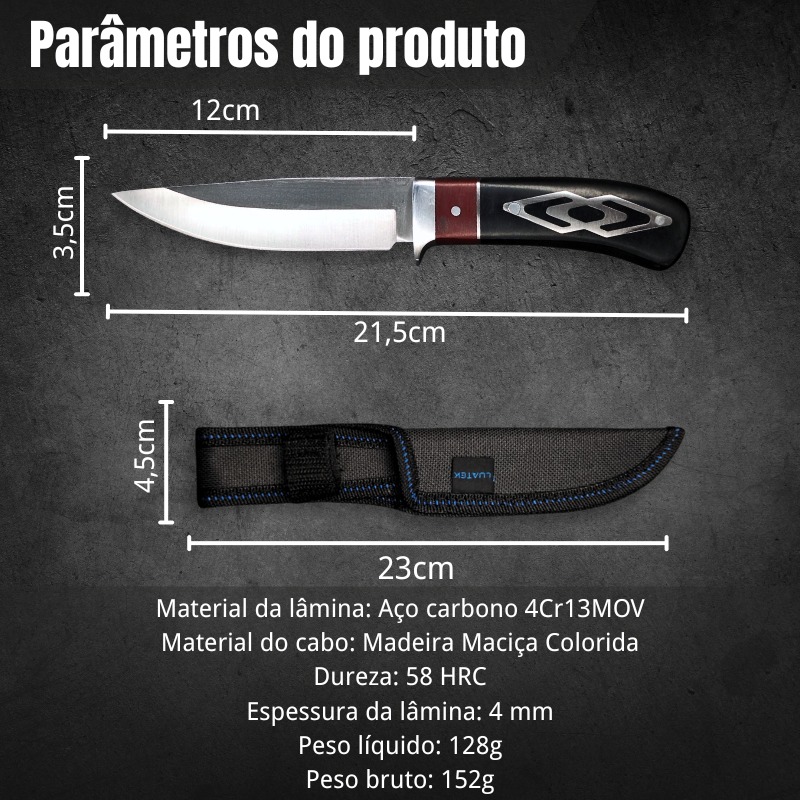 Descrição Do Produto Faca Full Tang Versátil 21 Cm Cabo Madeira Pesca Camping + Bainha Nylon Linda Faca Compacta, leve e Full Tang (Lâmina Inteiriça). Cabo Madeira.