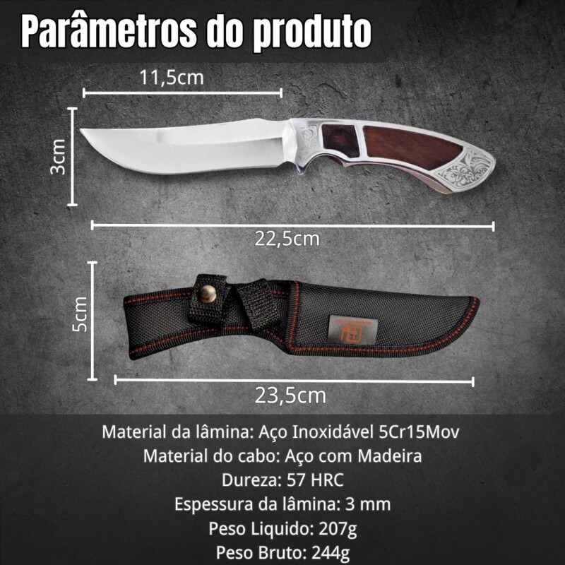 Faca Militar Tática Caça Pesca Camping Aço Inox 0867