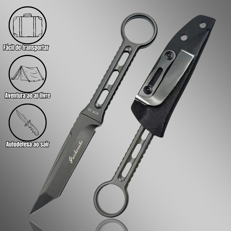 Faca Sobrevivência Tática 21cm, Lâmina e Empunhadura em Aço AUS-10 GD-B2