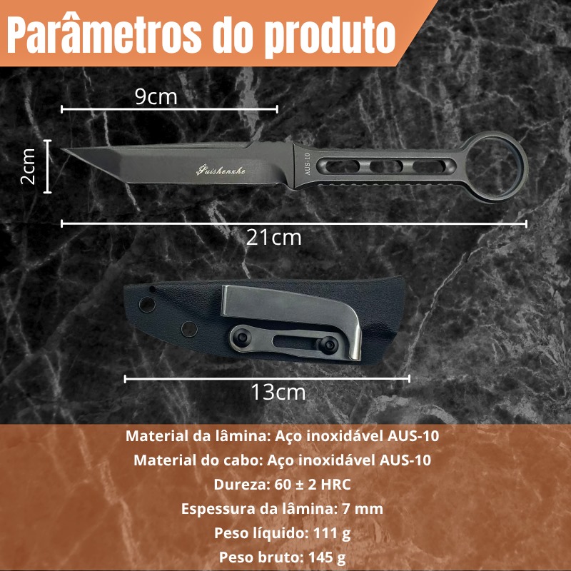 Faca Sobrevivência Tática 21cm, Lâmina e Empunhadura em Aço AUS-10 GD-B2 quantidade