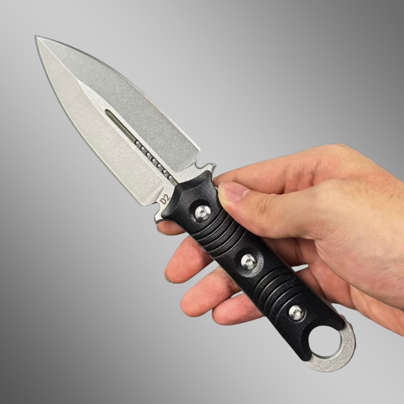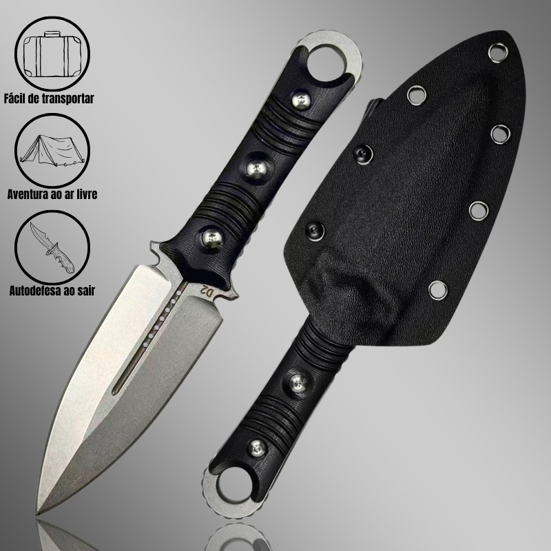 Faca Tática de dois Gumes 22cm Aço Especial D2 e Cabo em G10 + Bainha Reforçada TATICA-B2
