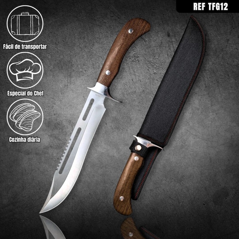 Facão 40cm com design vazado e Serrilhado no Dorso + Bainha reforçada TFG12 quantidade