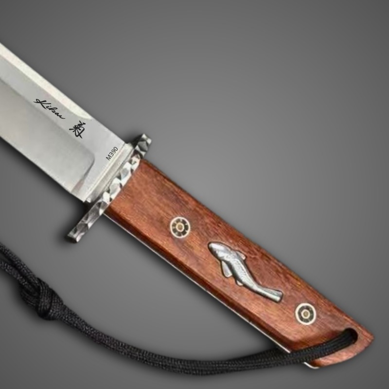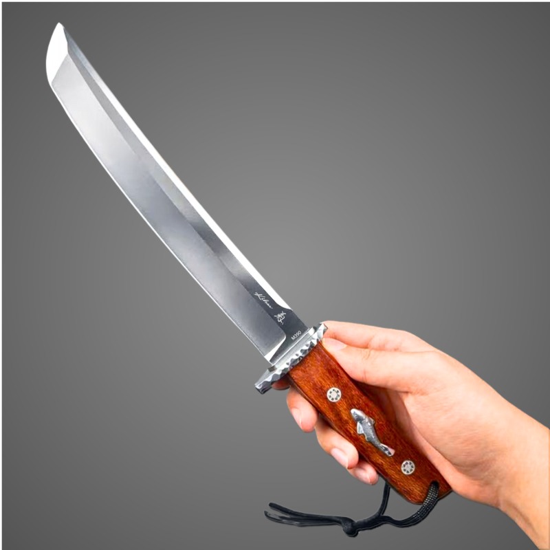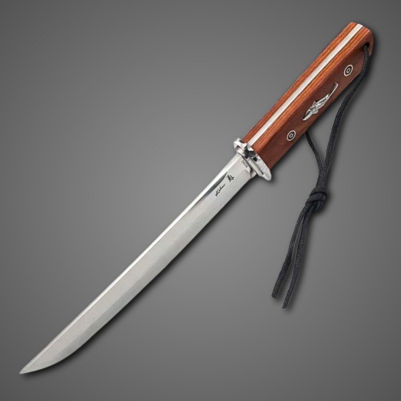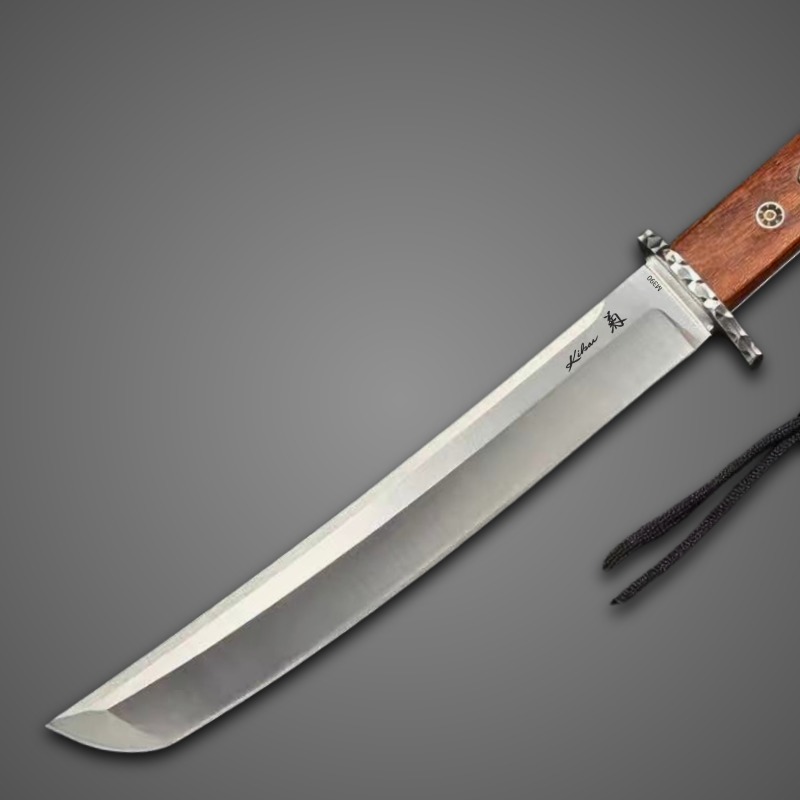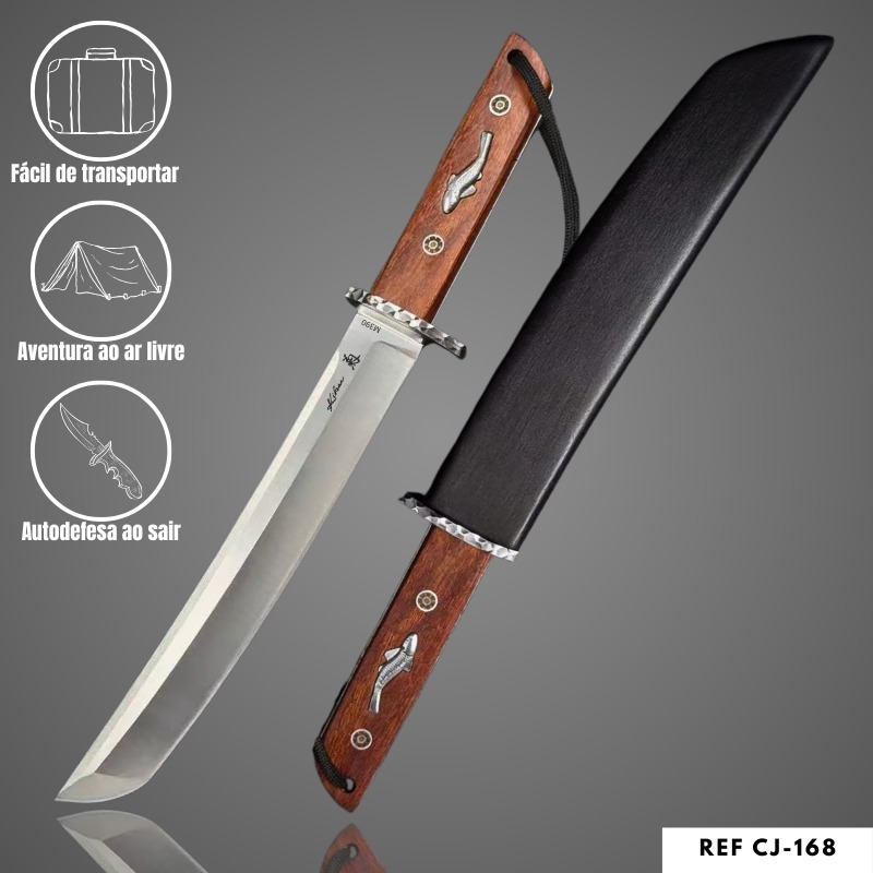 Facão Japonês Tanto Aço Especial M390 e Cabo de Sândalo Amarelo Com detalhes de Metal e Pinos de Cobre CJ-168